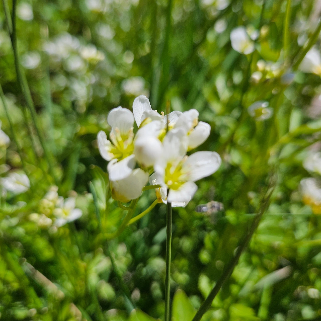 산행 시작 후, 세 시간 만에 도착한 세석평전을 지나고 습지에 도착했다. 습지에는 동이나물꽃과 왜갓냉이꽃이 경쟁을 하듯 피어 있다. 그 옆에서 박새가 자랑하듯 커다란 잎을 펼치고 있다. 사계절이 아름다운 세석의 습지다. 습지를 지나 내가 좋아하는 촛대봉에 도착해서 사방을 조망한다. 천왕봉 쪽에는 하얀 뭉게구름이 두둥실 떠 다닌다.