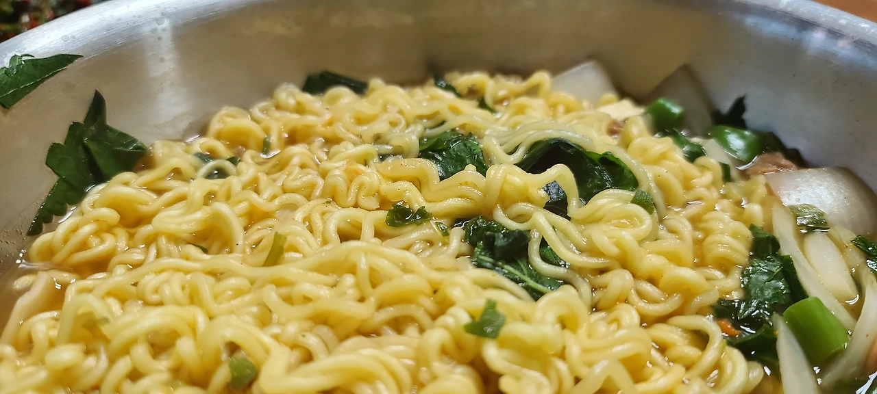 남편은 다용도실 주방에서 짜장라면을 끓이고 나는 주방에서 양파와 깻잎을 넣고 라면을 끓였다. 식탁에 마주 앉은 중간에 냄비째 나란히 두고 당신 한 젓가락, 나 한 젓가락 하면서 나눠 먹었다.