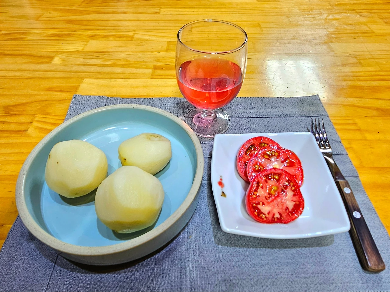 다음날, 얼어 있는 차에 남은 것을 첨가해서 남편의 아침상을 차렸다.