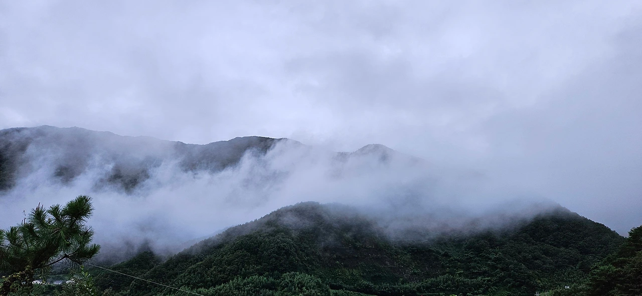 숲속 부부도 수제비를 뜨기 위해 밀가루에 물을 부어 뭉쳤다. 감자를 깍둑썰어 수제비 뜨기 대회에 참가했다. 산허리를 감아 도는 운무와 떡갈나무, 소나무는 관객이다. 숲속 친구들은 물수제비 뜨기 대회를 응원하느라 열광했다.