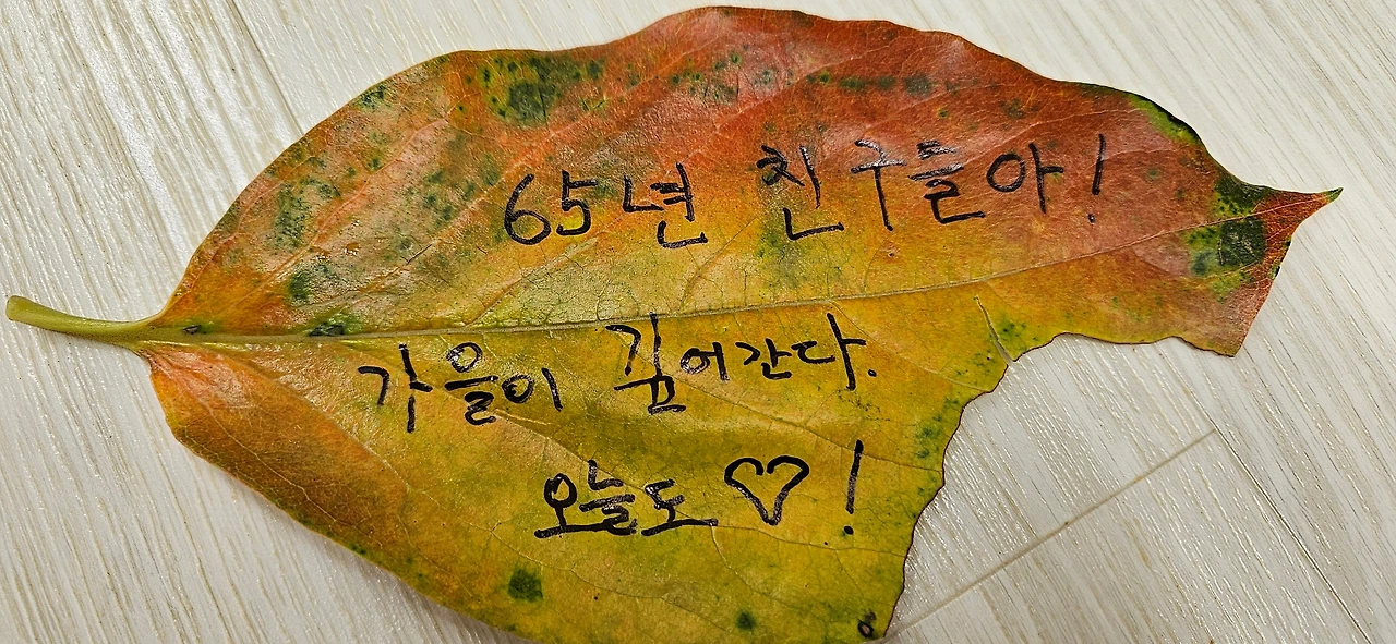 감잎이 예쁘게 물들었다. 예쁘게 물든 잎 하나 따서 친구들에게 낙엽편지를 쓰는 낭만과 여유도 부려 본다.