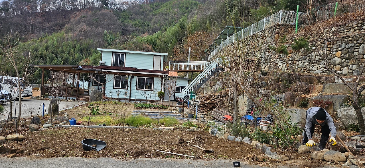 우리 집 마당에 주차를 하려면 비탈진 길을 올라와 직각으로 꺾인 비탈진 길을 또 올라와야 주차를 할 수 있다. 우리 부부는 그 길이 익숙해서 큰 불편함이 없지만처음 오는 지인들은 주차하는데 어려움을 겪었다. 더군다나 주차공간이 협소해 3대 이상의 차는 주차할 곳이 없어 비탈진 길에 주차를 하곤 했다. 우리는 남편의 일이 없는 겨울에 다시 주차장을 만들기로 했다. 5년 전 토목공사를 다시 하면서 마당과 텃밭에 위치를 바꿨다. 남편이 주차장으로 만들자는 곳에 나는 산에서 꽃나무를 캐다 심고 봄이면 장에 나가 묘목을 사서 심었다. 나무와 나무 사이의 빈 공간에는 빈틈없이 꽃을 심었다. 해가 거듭되면서 나무는 몸집을 키워 좁은 공간을 가득 채우고 가지는 서로 부대끼며 생채기를 냈다. 번식력 좋은 꽃은 땅을 덮었다. 나는 가지치기를 하고 풀과의 전쟁을 했지만 점점 지쳐갔다. 결국 남편의 의견대로 그곳에 주차장을 만들기로 한 것이다.