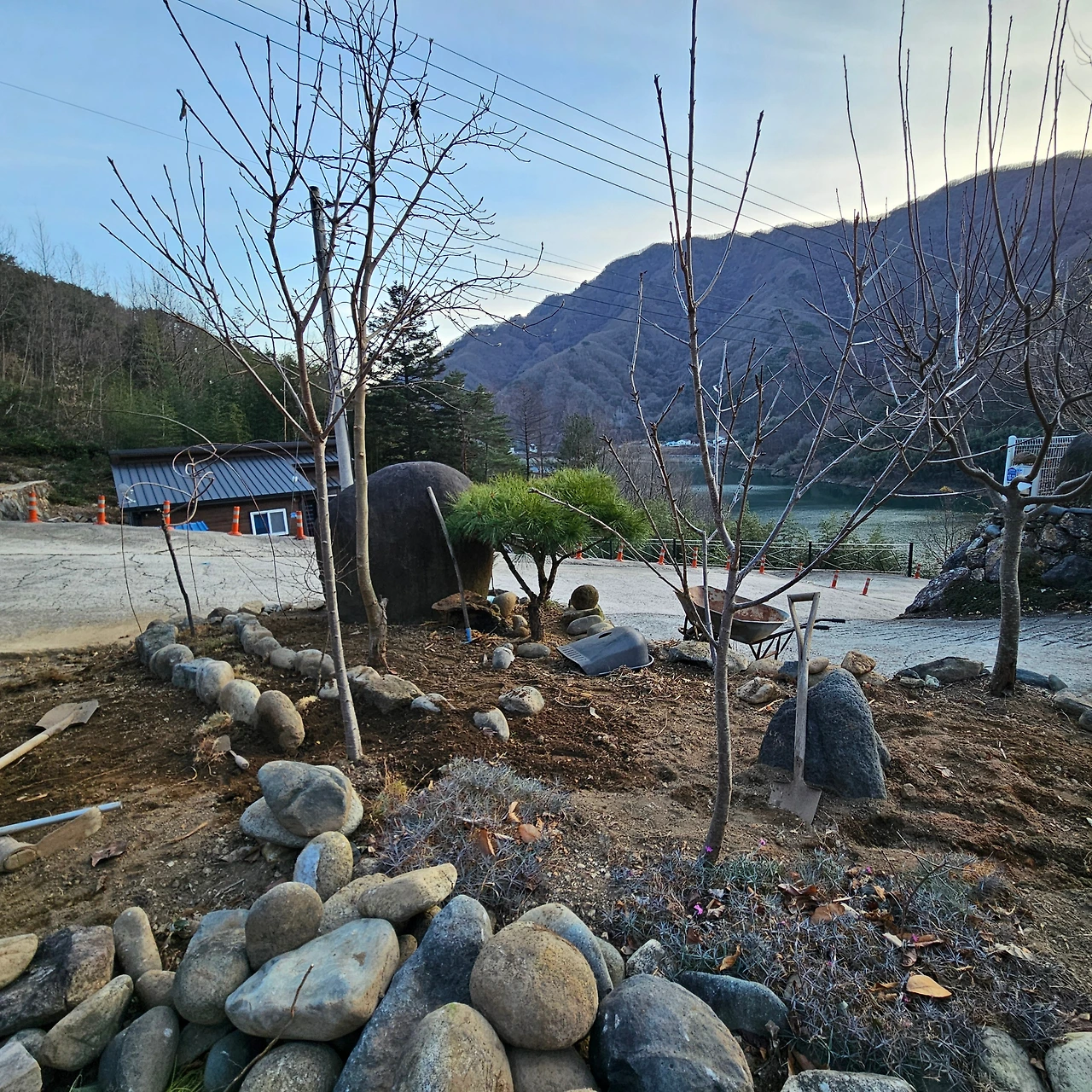 주차장을 만들며 그 옆에 화단을 만드는 곳은 붕어를 키우던 연못이다. 잘 크던 붕어를 두 번이나 수달에게 빼앗긴 후 연못에 흙을 채우고 꽃을 심었다.그때 연못에 흙을 채우는 일이 만만치 않아 밭과 높이를 맞추지 못했다. 이번에 꽃밭을 포기하고 주차장을 만들면서 밭에서 나온 흙을 옮겨 높이를 맞추었다.