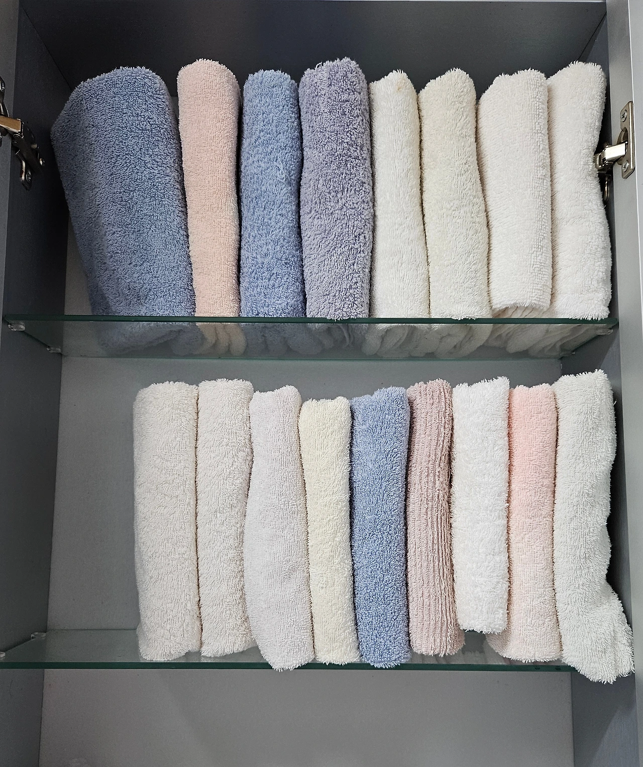 운동을 하고 욕실에 들어가 땀을 씻었다. 수건을 꺼내려고 수납장을 열었다. 그런데 수건은 수납장 맨 윗 칸에만 책을 꽂아 놓은 듯 나란히 모여 있었다. 깨끼발을 하고 손을 뻗어 보지만 닿지 않았다.