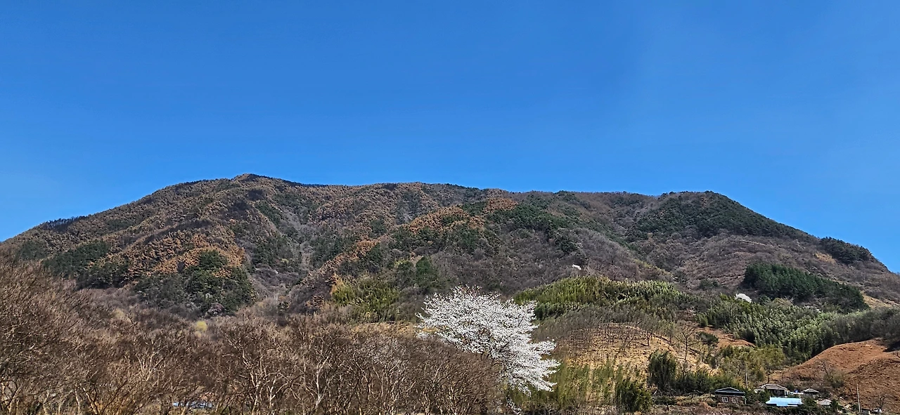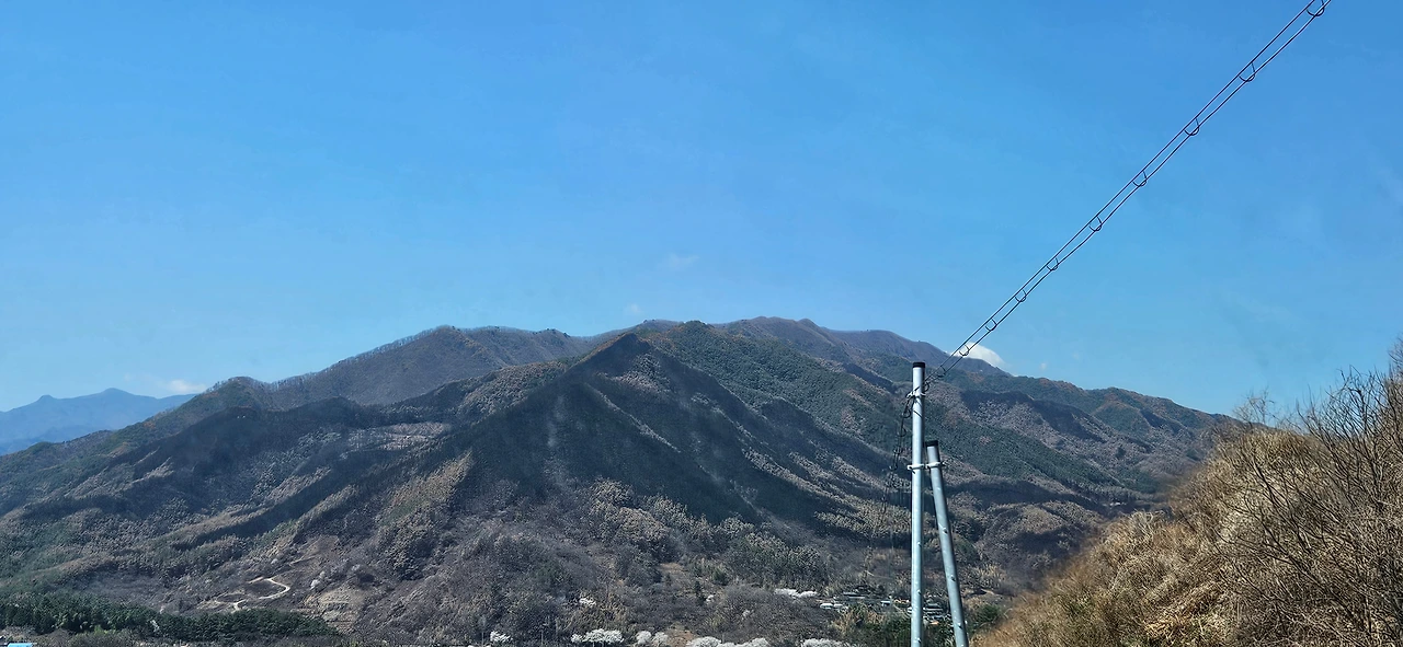 마을 언덕에 오르니 구곡산의 모습이 보인다.