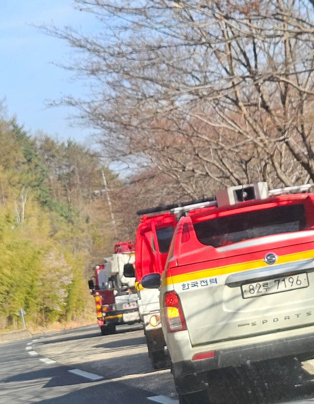 퇴근길에 무작정 산불이 났다는 곳으로 달렸다. 헬리콥터는 하늘을 날고 있고 길가에는 소방차가 줄 지어 있고 경찰이 길을 막고 있다.