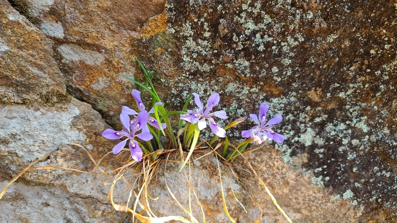 산청군 삼장면에 있는 대원사 둘레길을 걷다 보면 바위틈에 앙증맞게 핀 각시붓꽃을 볼 수 있다.