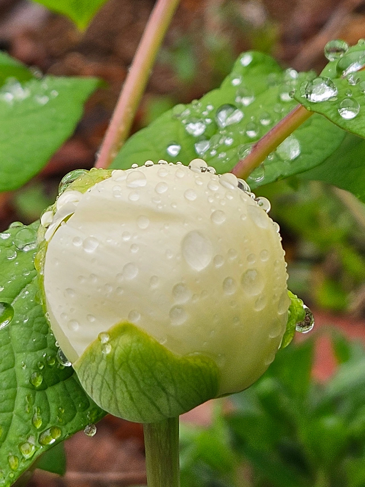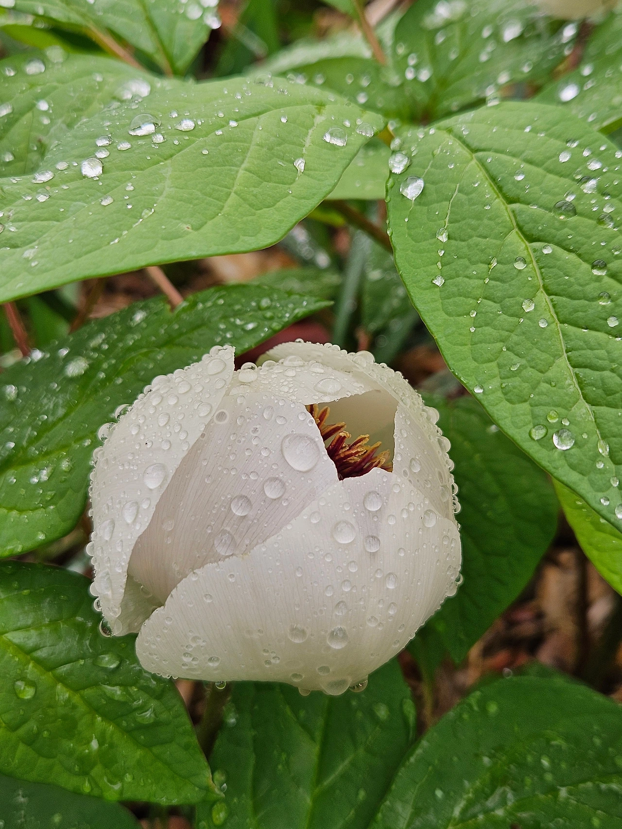 밤사이 내린 비는 백작약 위에 방울방울로 영롱하게 모여 있다.