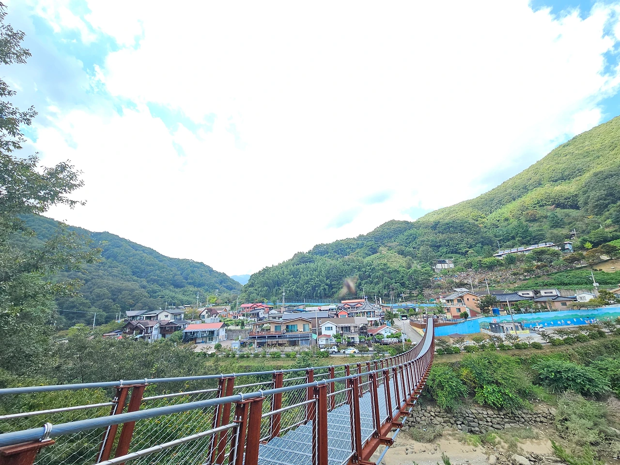 2025년 6월에 103m 길이의 출렁다리가 개통되어 마을과 호수를 함께 조망할 수 있다. 다리에 서면 아래로 흐르는 우렁찬 물소리가 발끝을 간지럽힌다.