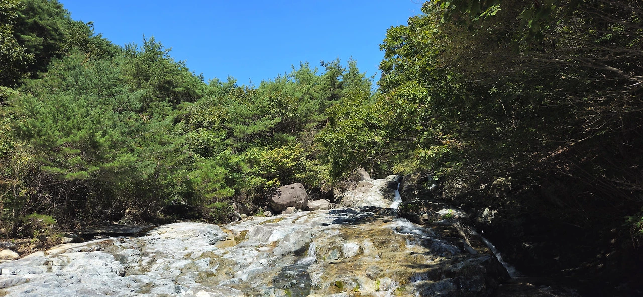 웅석봉 방향으로 계곡을 따라 한 시간쯤 걸으면 만나는 두 줄기 폭포는 계곡의 절정을 이룬다. 바위에 길게 누운 물길은 마치 혈관처럼 여러 갈래로 퍼져있고 그 길을 따라 물이 춤추듯 흐른다.
