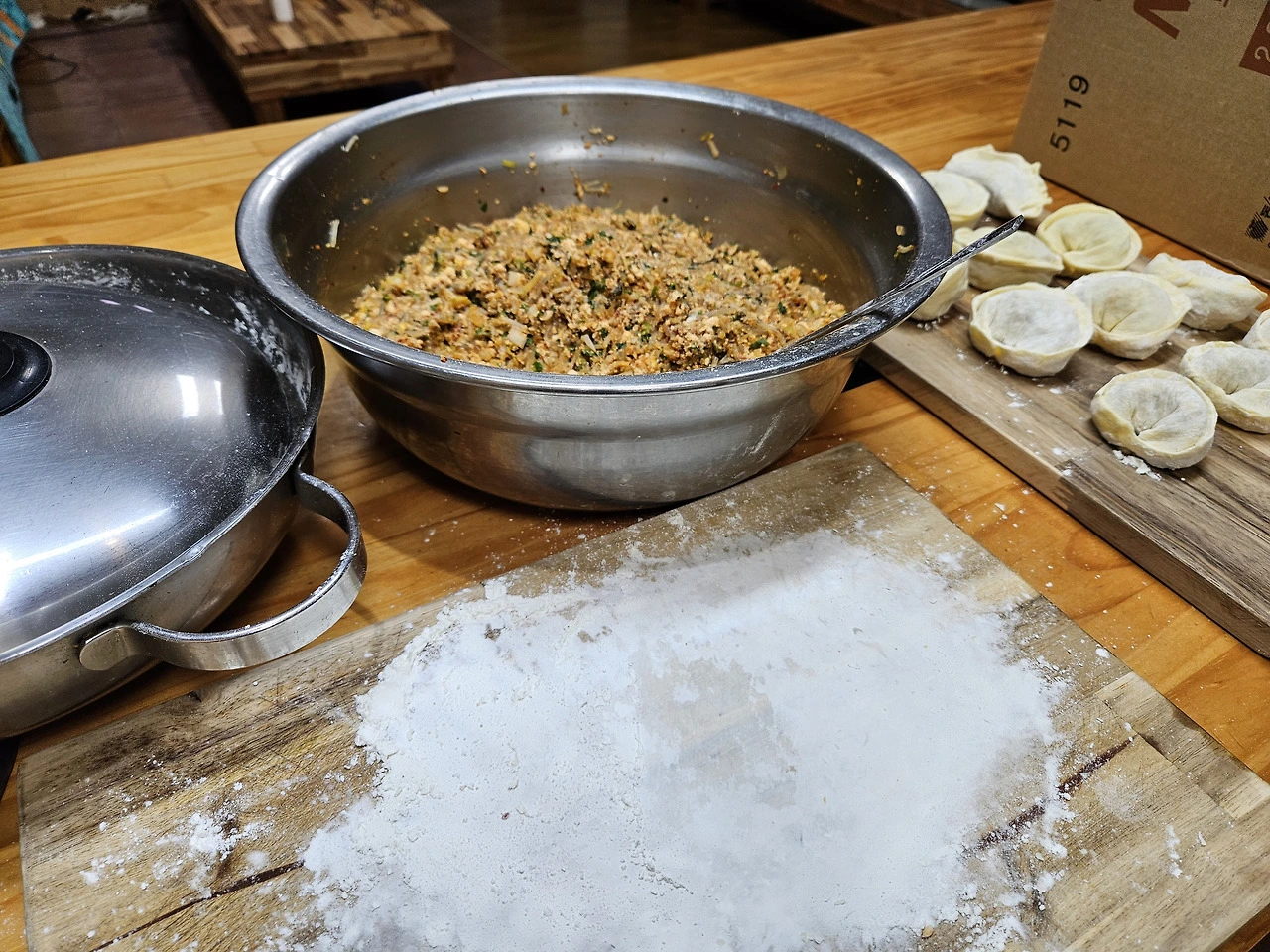 밀가루와 만두 속 재료를 구입했다.