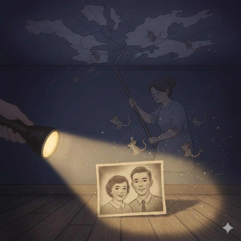 그 순간, 오래된 시간의 문이 살짝 열렸다. 낡은 집의 천장, 세계지도를 닮은 얼룩덜룩한 무늬, 그 위에서 뛰놀던 서생원들, 그리고 그 소리에 잠에서 깬 엄마가 빗자루 끝으로 천장을 두드리던 모습까지 한꺼번에 몰려왔다.