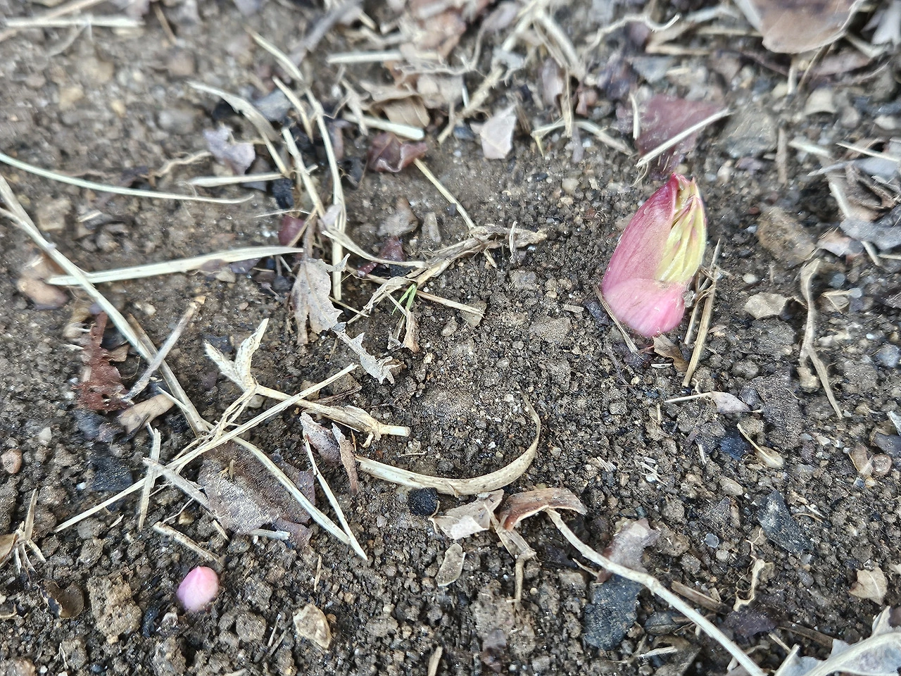 지난가을 먼당에서받아온 약속 하나실한 놈은 귀하다며땅속 깊이 묻어주고시들어 잊힌 작은 뿌리는볕 바른 귀퉁이 겨우 찾아낙엽 이불 덮어주었네미안쿠나, 미안쿠나뒤늦은 마음이 무색하게작은놈이 먼저붉은 주먹 불끈 쥐고봄을 밀어 올린다으쌰, 으쌰제 힘으로 일어서는대견한 저 몸짓