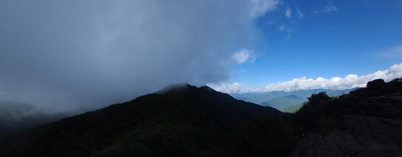 외삼신봉 봉우리는 시커먼 구름을 바치고 태양은 내리누르고 있으니 구름은 더 이상 버티지 못하고 도망치기 시작했다.