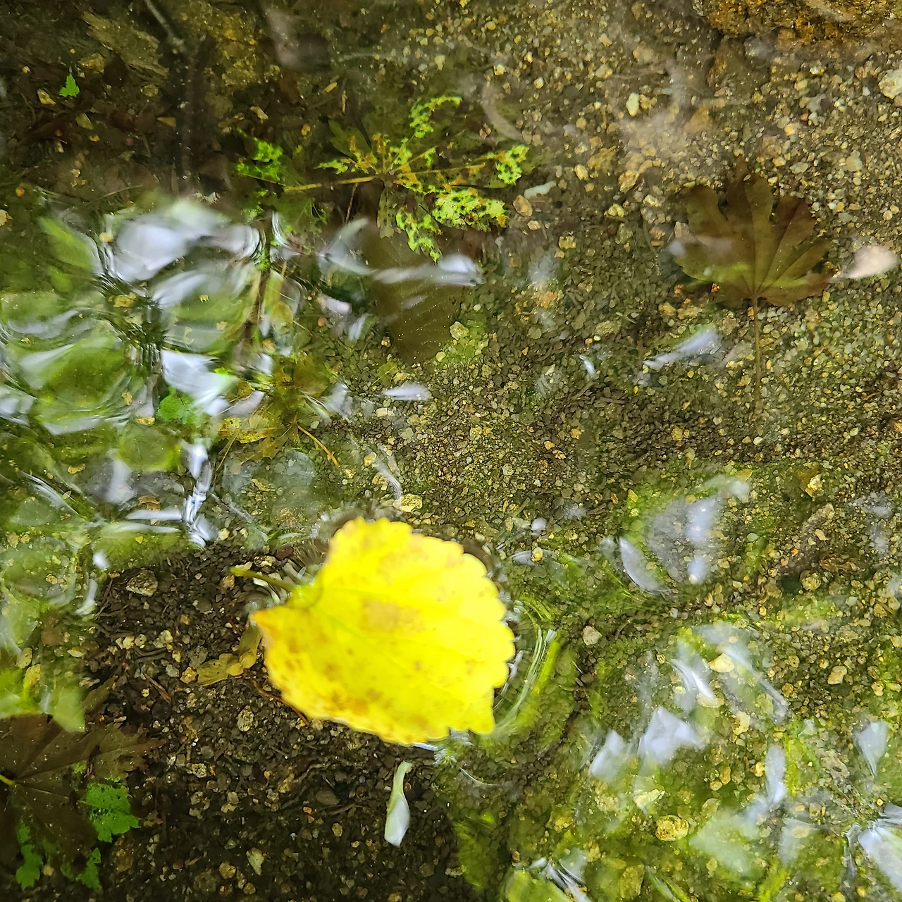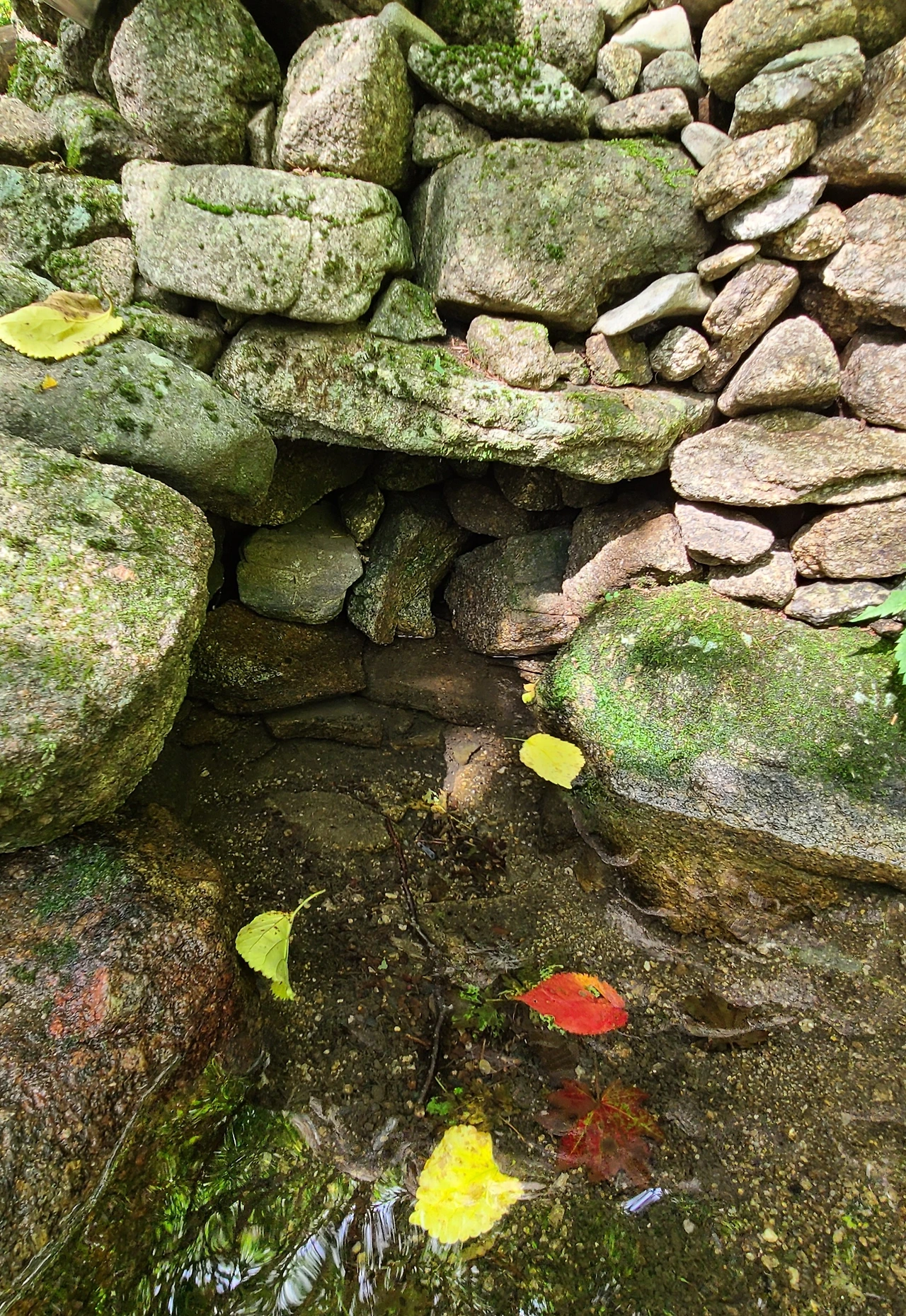 떨어진 잎들을 주워 올라올 때 만난 샘물에 나뭇잎 배를 띄웠다.