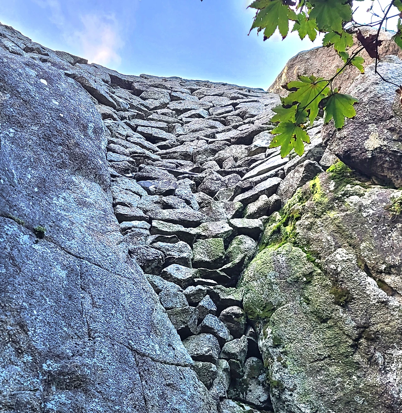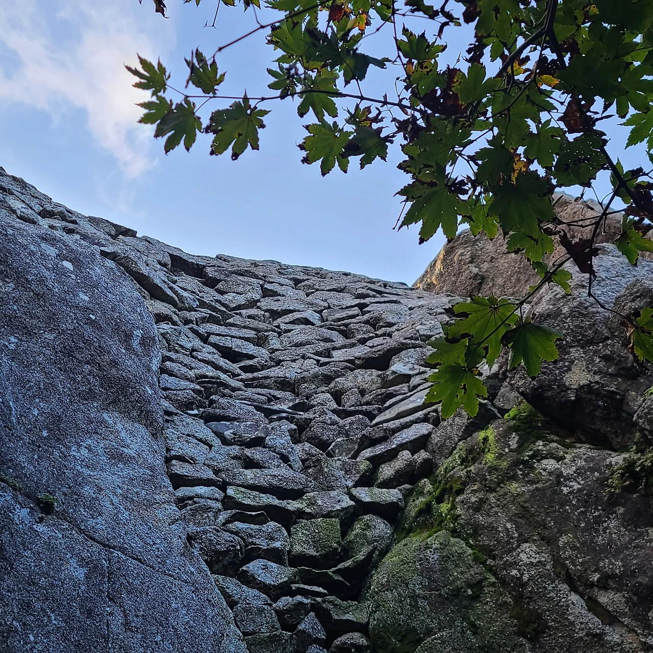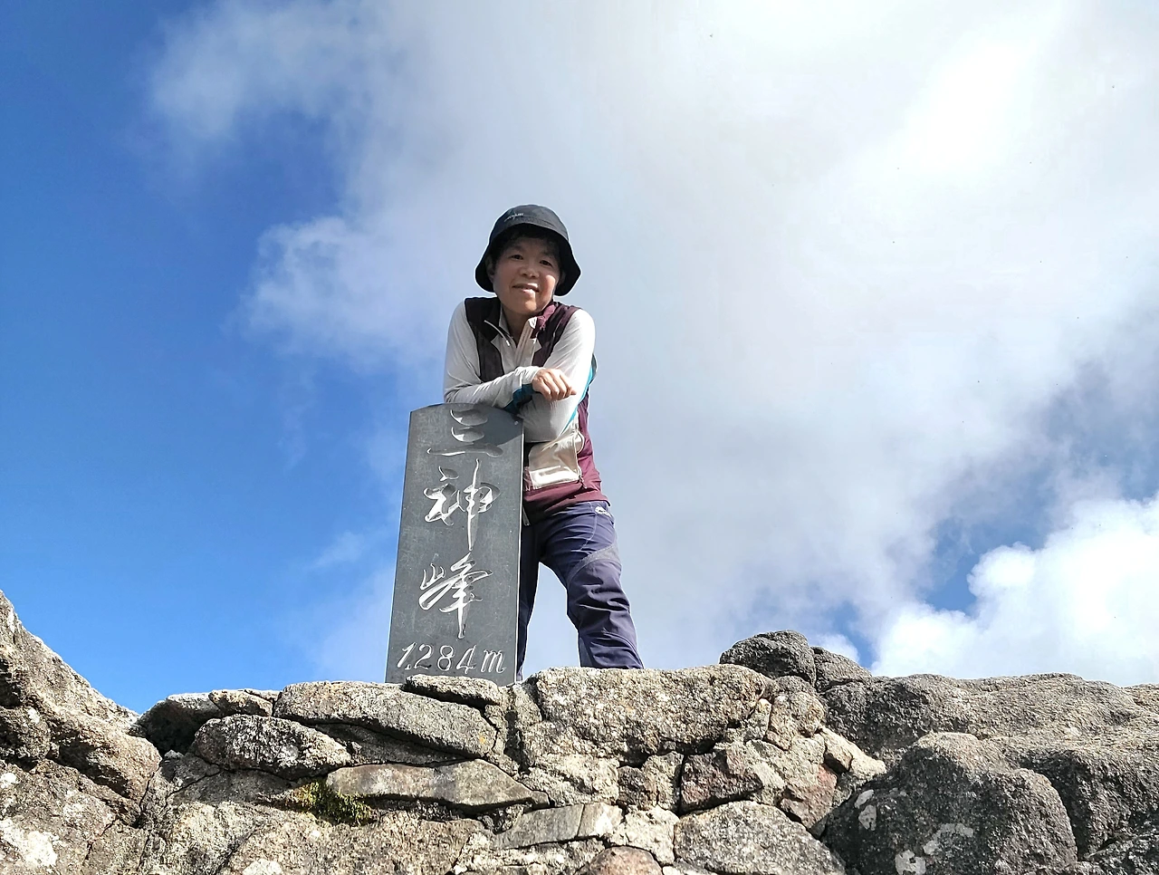 거대한 바위와 바위 사이를 작은 돌로 채워진 그 위에 삼신봉 정상석이 있다. 어느 장인의 손길이 이렇게 정교하게 돌을 쌓았을까? 누구의 손길인지 늘 궁금하지만 알 길이 없다.