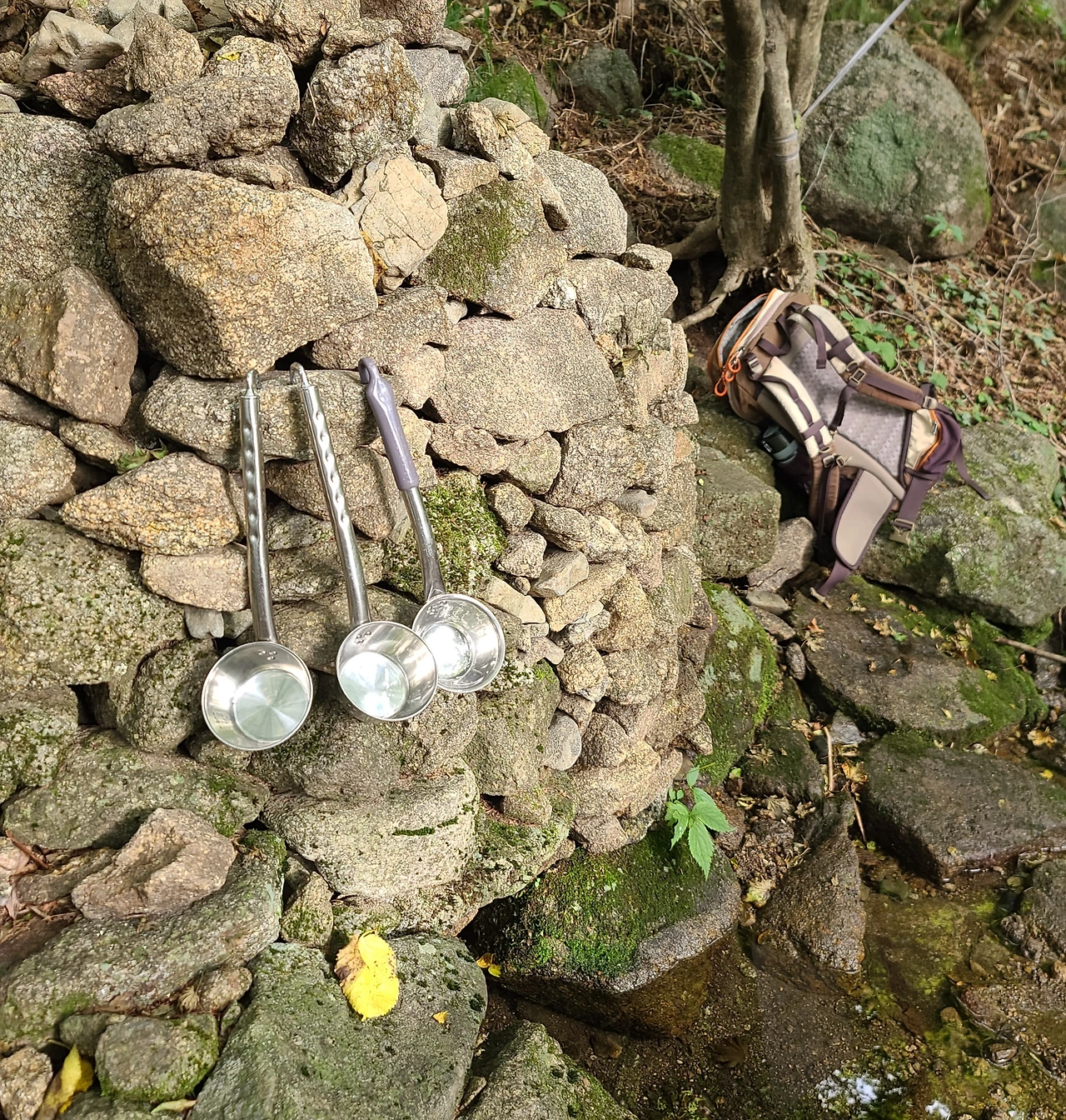 물을 먹을 수 있게 바가지를 가져다 놓으면 없어지곤 해서 늘 아쉬웠다. 그런데 누군가가 스텐 국자를 가져다 놓았다. 그 고마운 손길에 감사의 인사로 고개를 숙였다.