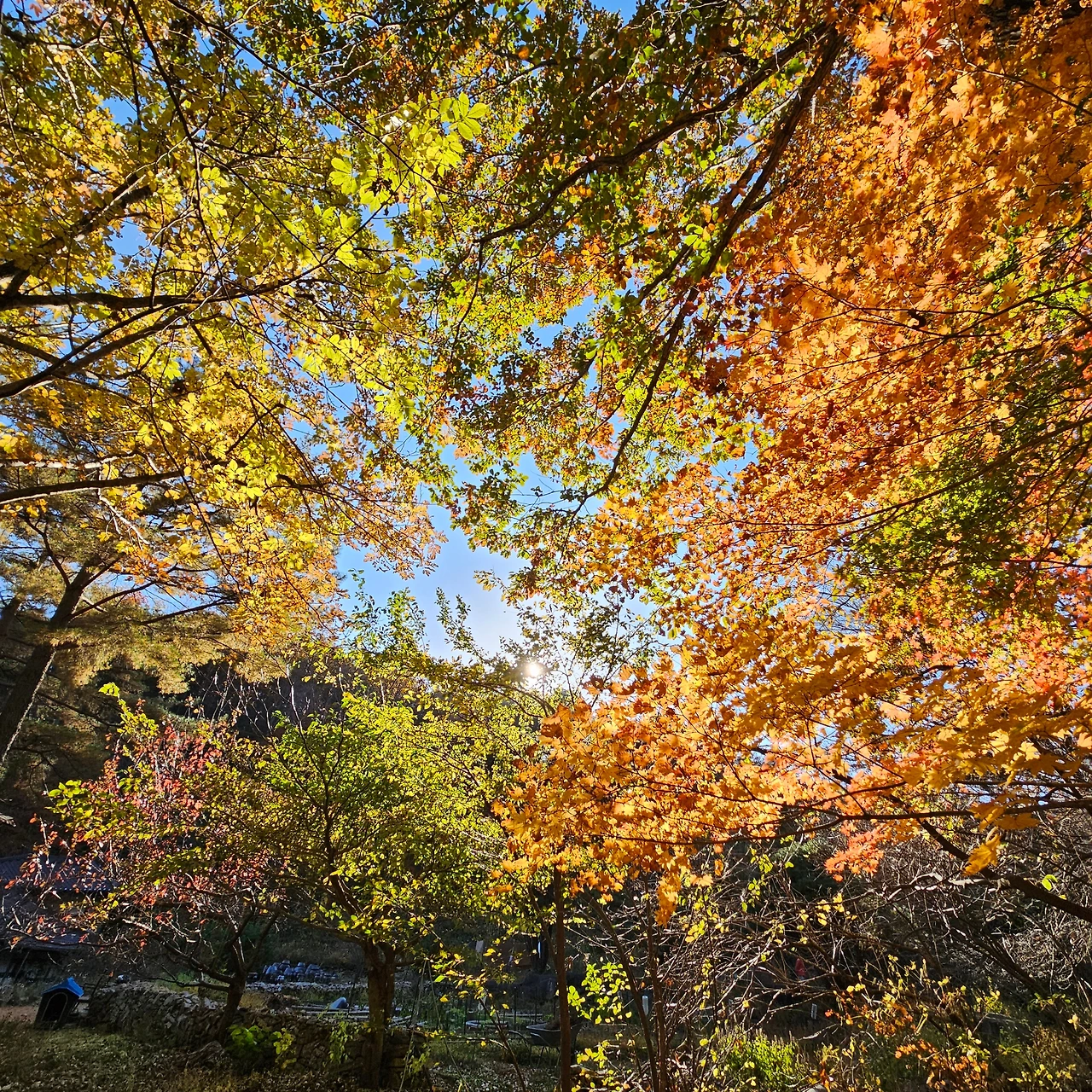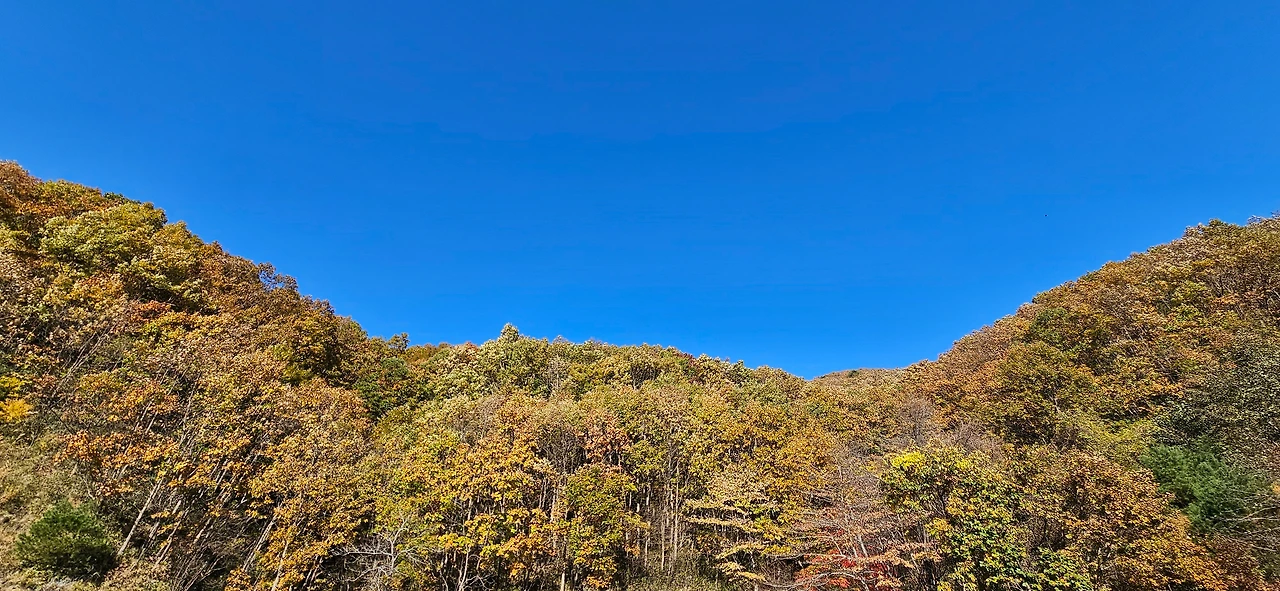 주차장에 도착해서 올려다본 하늘 떡갈나무 단풍과 하늘이 조화롭다.