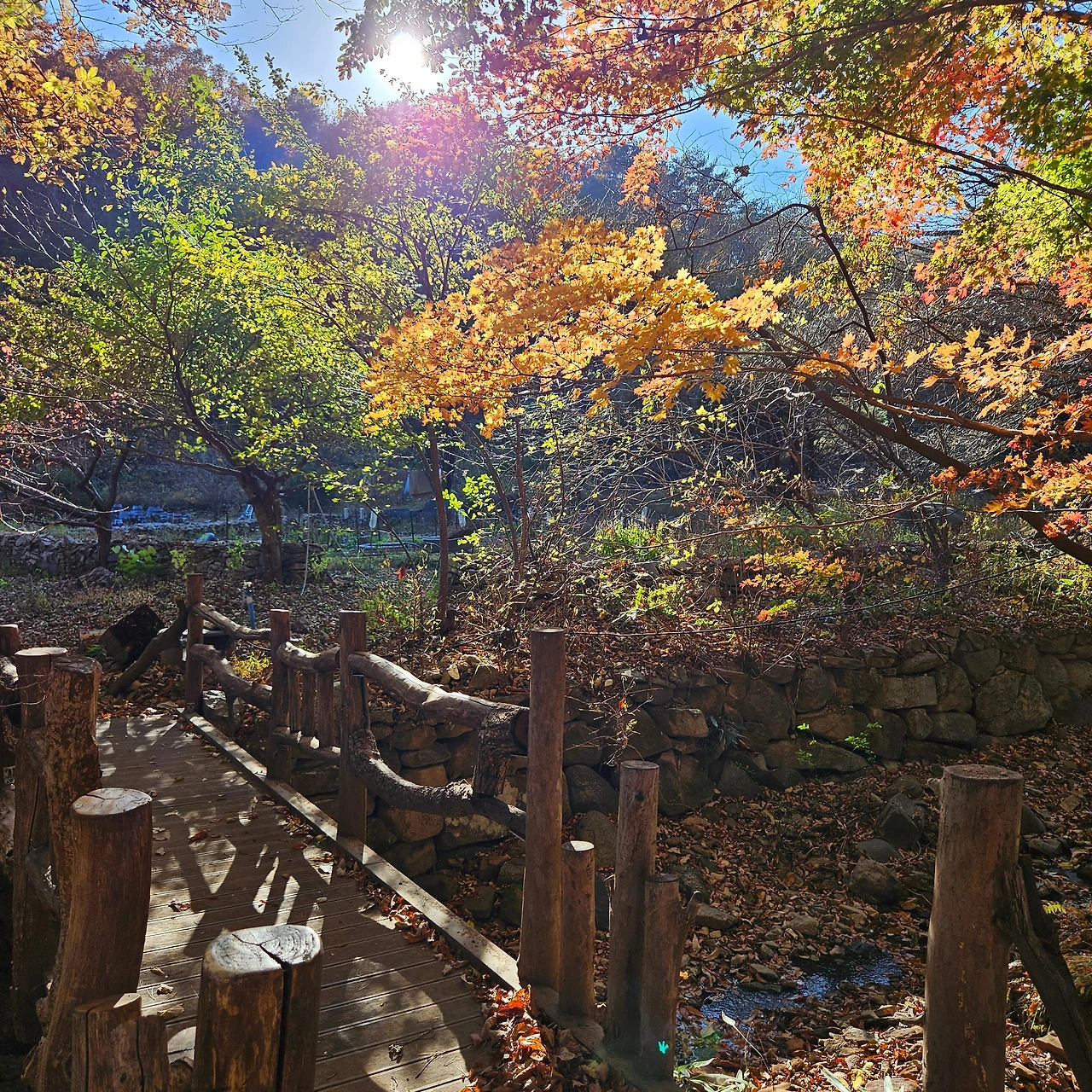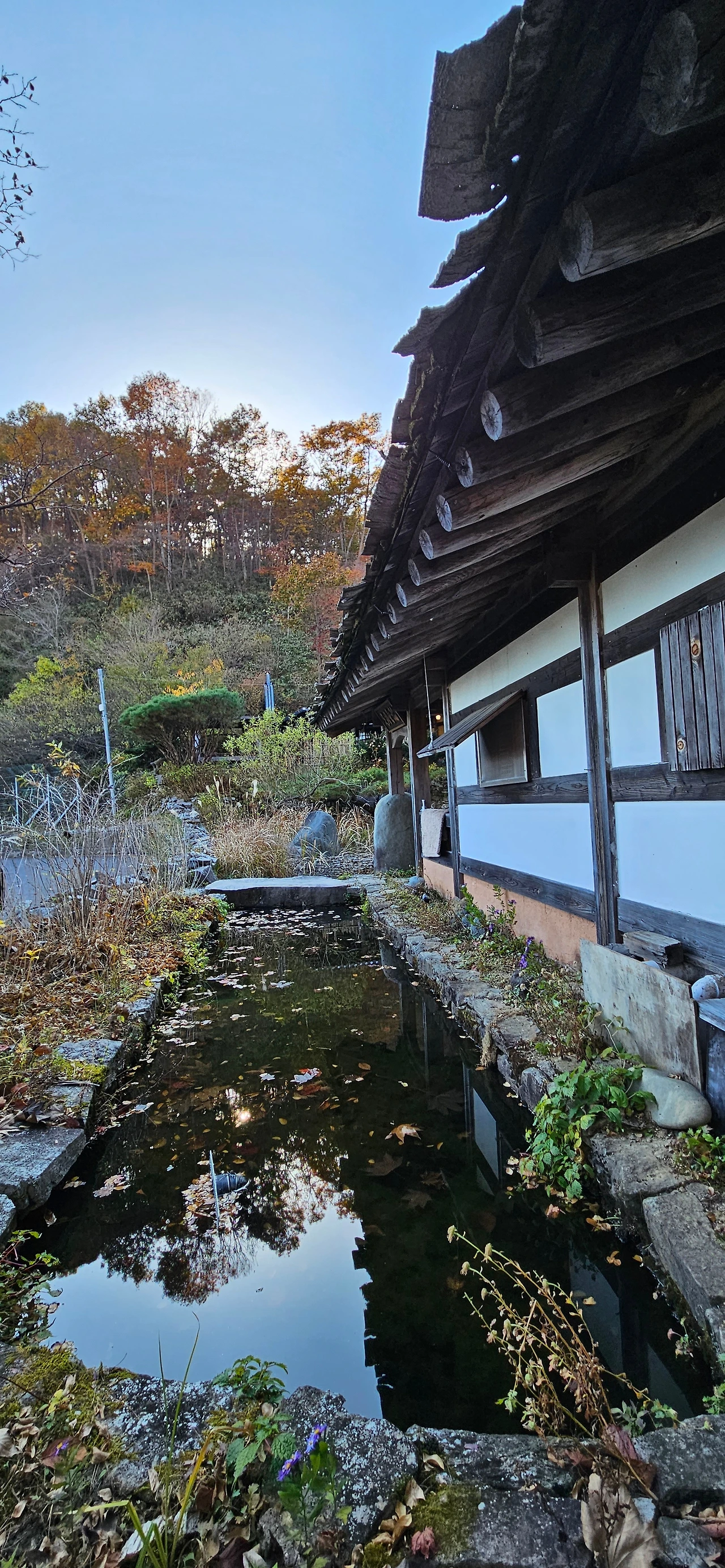 고운동 펜션의 연못 한옥의 대문과 계곡과 단풍은 자꾸 발걸음을 잡는다.