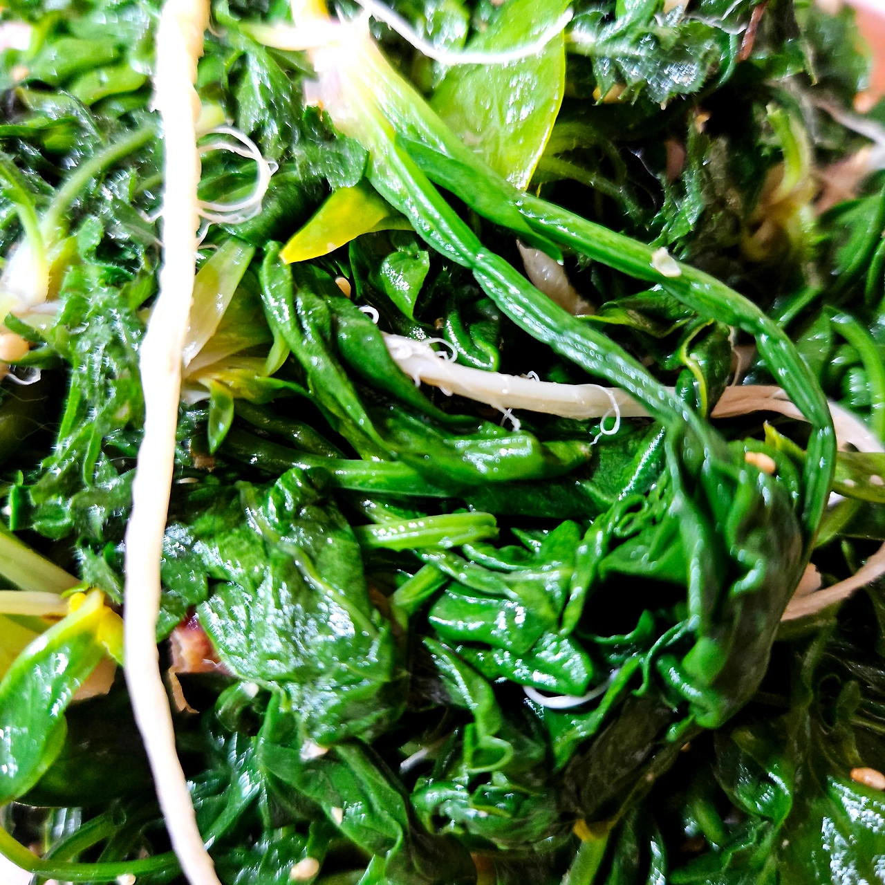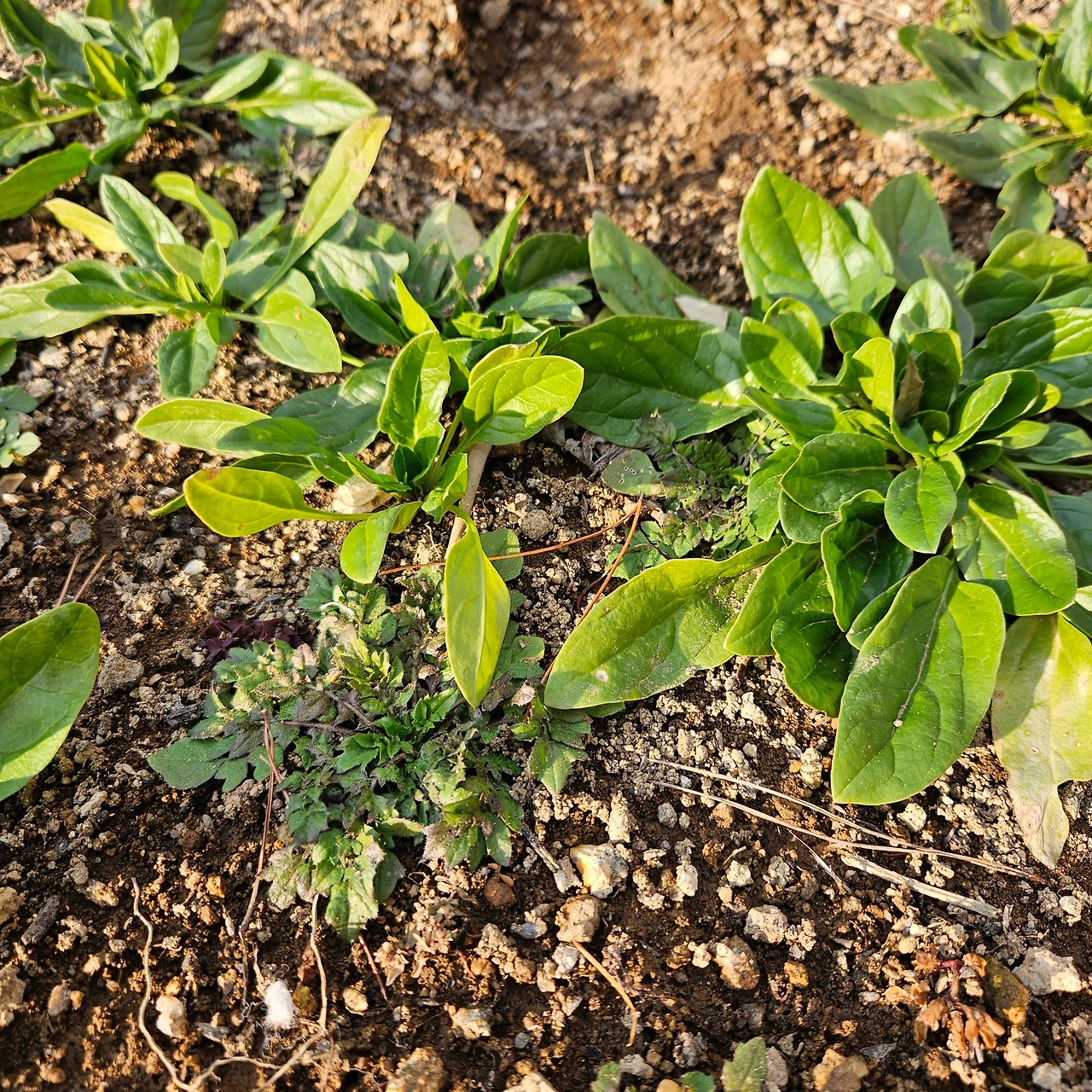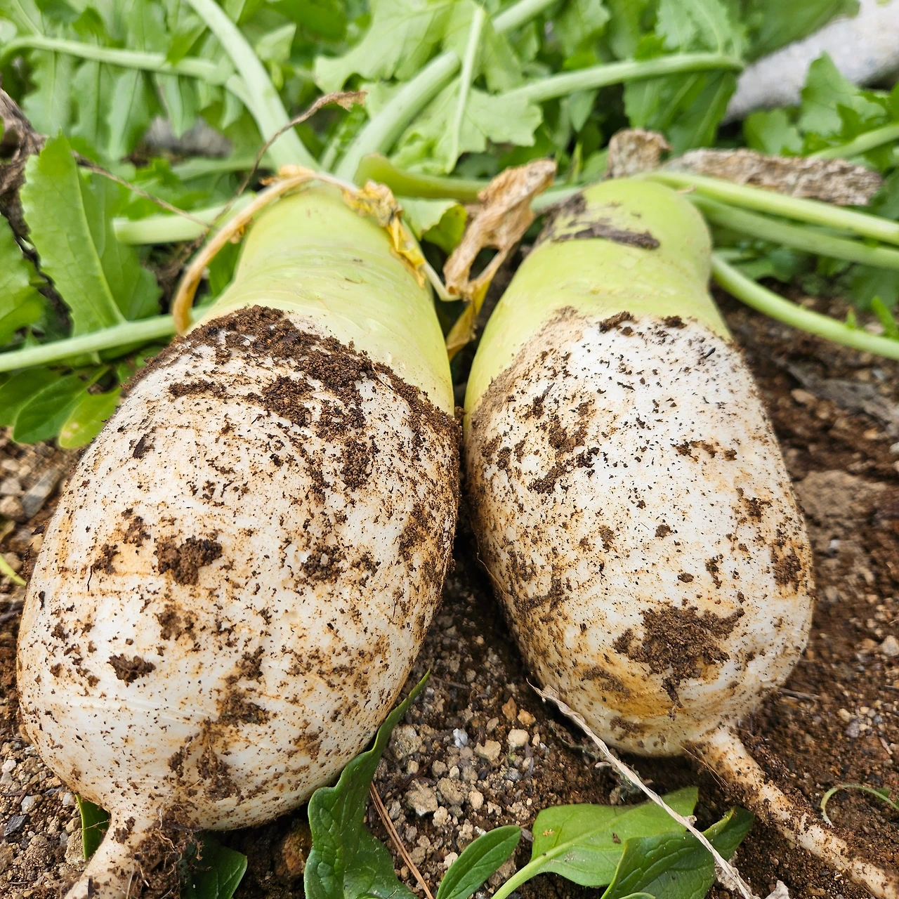 우선 작은 칼을 이용해 시금치부터 뜯었다. 시금치 사이사이 실한 냉이들이 눈에 보여 칼을 땅속 깊이 찔러 넣어 몇 뿌리 캐서 보탰다. 한 채반 채워 놓고 국을 끓이려고 무를 뽑았다. 처음 싹을 틔울 때 솎아준 이후로 물 몇 번 준 것밖에 없는데 기특하게도 제법 통통하게 살이 붙었다.