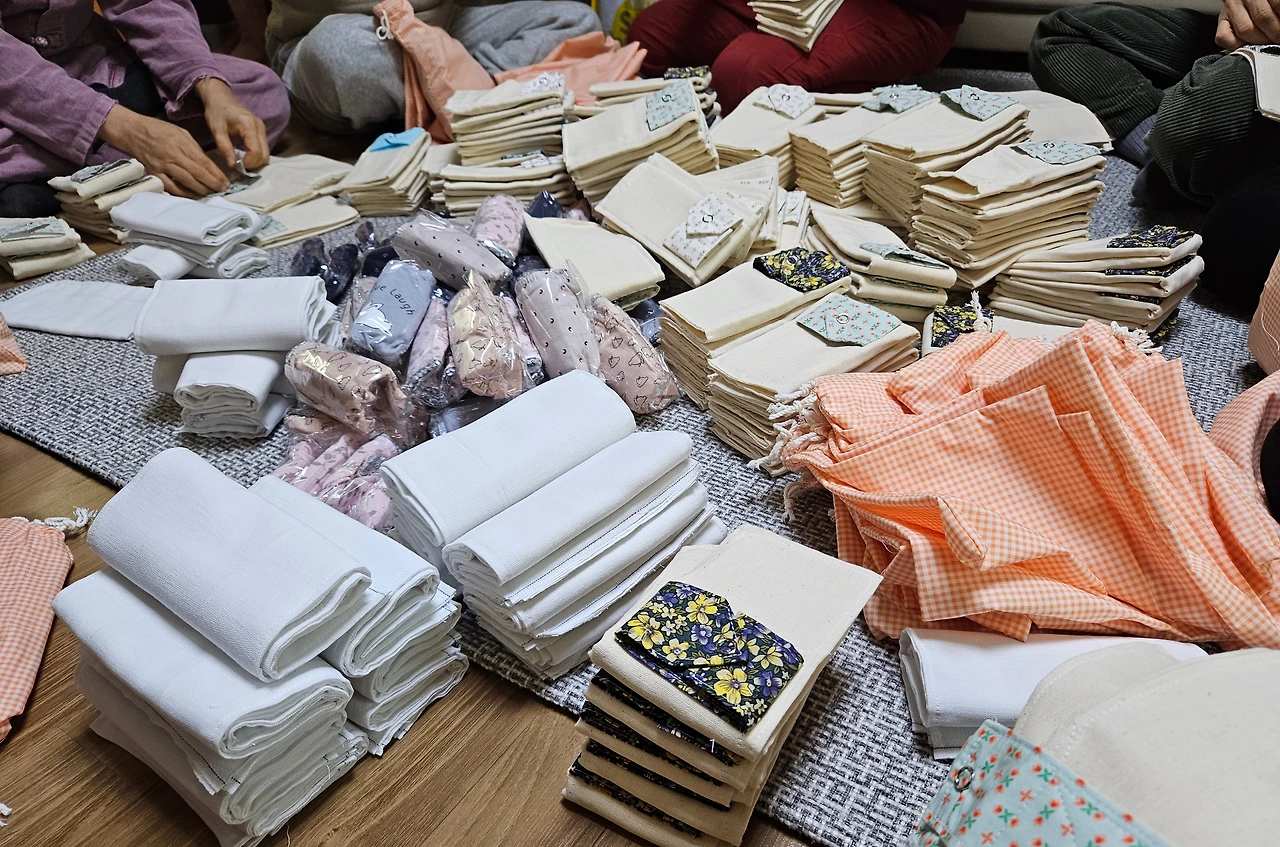 포장하는 일이 끝나고 신입 회원이 신고식을 한다며 점심으로 자장면을 산단다. 감사한 마음으로 점심을 먹으며 자체적으로 모은 금액, 후원금이 얼마나 남았는지 보고한다. 한 번에 100세트를 만들어 보내는데 그때마다 100만 원의 비용이 든다. 우리가 하는 일이 선교사들 사이에 입소문이 나면서 내년에는 더 많은 생리대를 만들어야 한다.