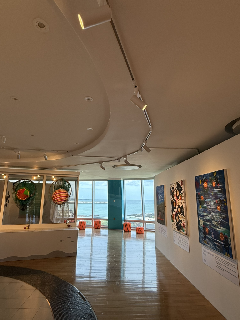 근처 카페 갔다가 발견해서 우연히 들리게 되었습니다. 문화의 날이라 무료입장이었는데, 마침 ‘해녀 바당 작품전’이라는 특별 전시도 하고 있어서 운 좋게 관람할 수 있었습니다. 해녀분들이 직접 참여한 전시였는데, 결혼할 때 해오신 이불이나 옷 등 각자의 애정하는 물건들이 작품의 재료였습니다. 작품으로 내놓기까지의 고민한 흔적들이 보여서 더 마음에 와닿았습니다.