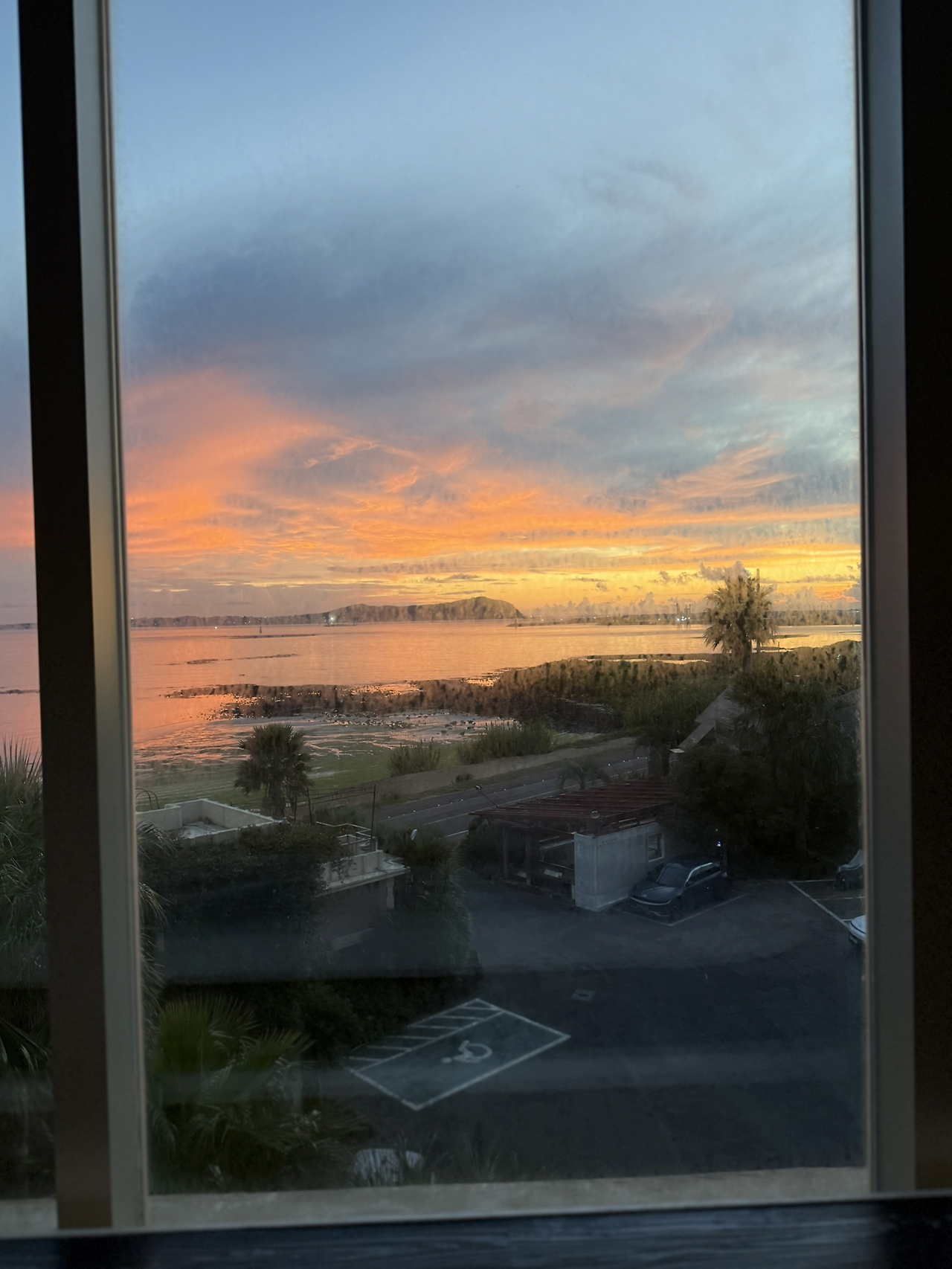 점점 해가 떠오르면서 붉게 물드는 모습이 참 멋있었습니다. 그리고 밖에 나가지 않고도 침대에 누워서 편하게 일출을 보며 사색했던 순간이 정말 평온했습니다.