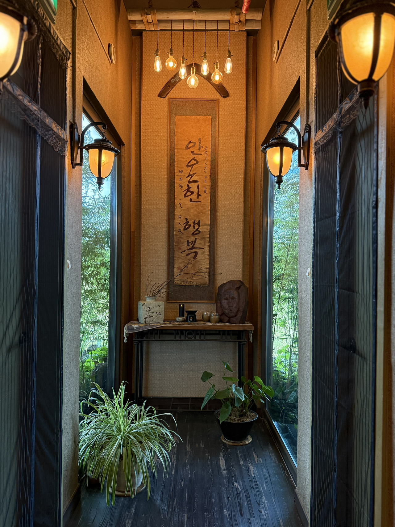 마지막 사진은 다도실 복도 끝에 꾸며진 공간인데, 안온한 행복이라니 마음이 절로 좋아지는 문장이었어요.