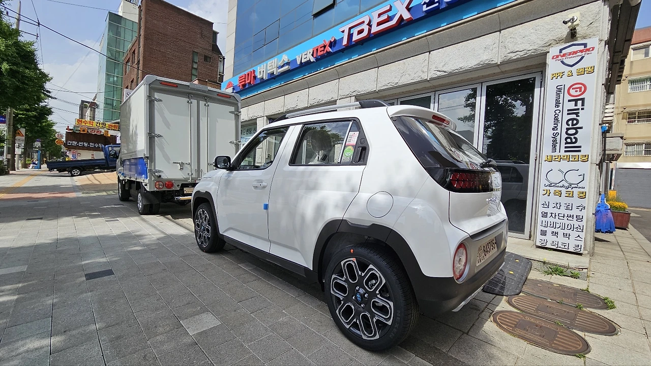 좀 쪽팔렸던 건 그걸 한 초등학생이 보고 달려왔습니다. 비닐을 떼기도 전이라 새 차라는 걸 알았나 봅니다.