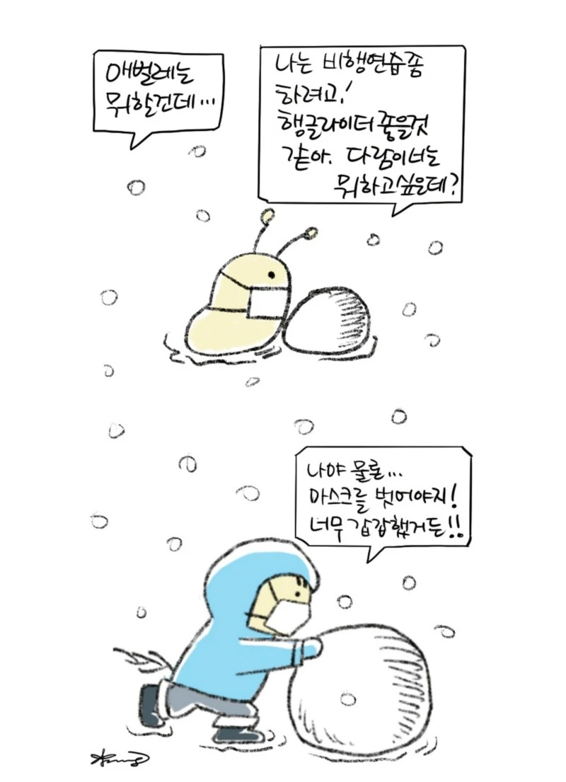 「다람이와 달수」 그립니다. 다람이는 다람쥐, 달수는 수달이고 농담속 한줄 인문학을 컨셉으로 그리는 만화 입니다.