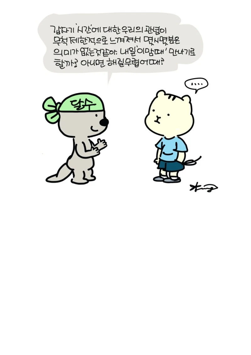 「다람이와 달수」 그립니다. 다람이는 다람쥐, 달수는 수달이고 농담속 한줄 인문학을 컨셉으로 그리는 만화 입니다.