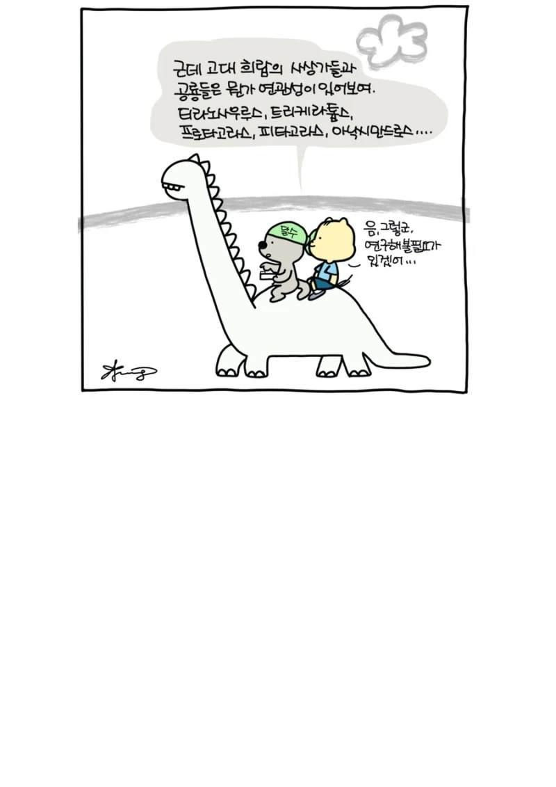 「다람이와 달수」 그립니다. 다람이는 다람쥐, 달수는 수달이고 농담속 한줄 인문학을 컨셉으로 그리는 만화 입니다.
