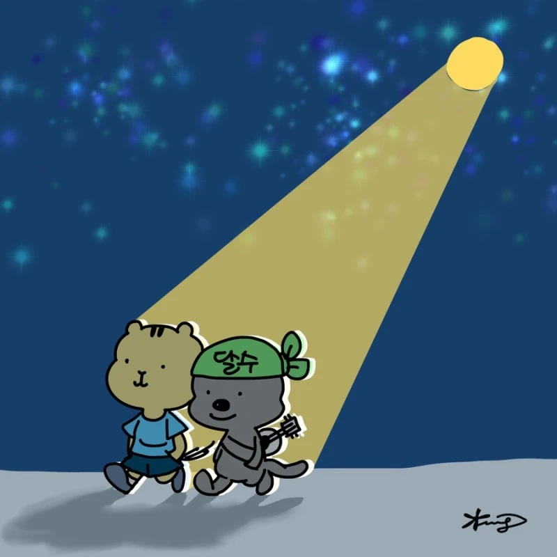 「다람이와 달수」 그립니다. 다람이는 다람쥐, 달수는 수달이고 농담속 한줄 인문학을 컨셉으로 그리는 만화 입니다.