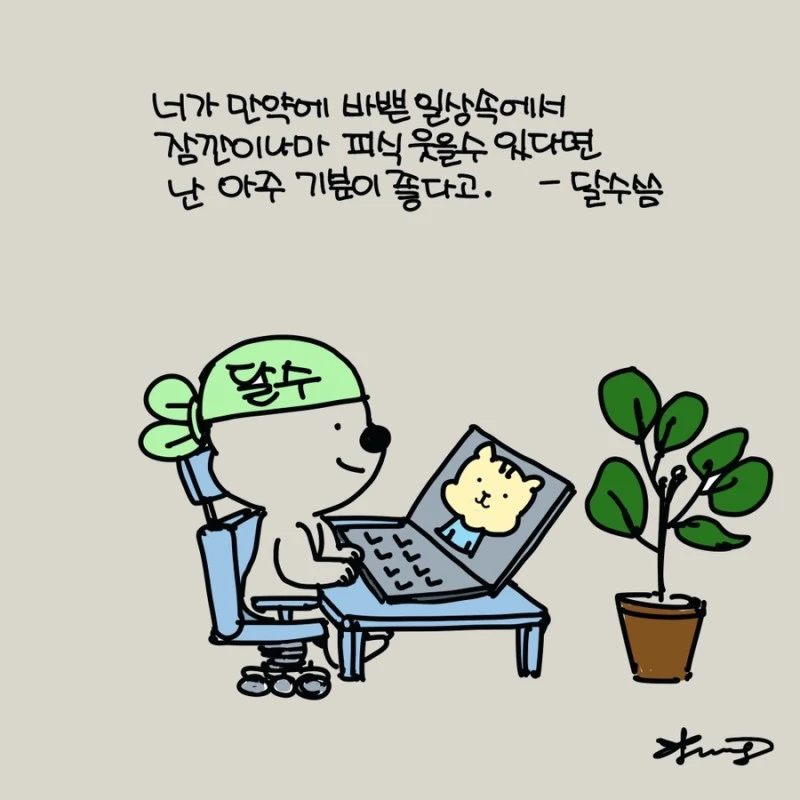 「다람이와 달수」 그립니다. 다람이는 다람쥐, 달수는 수달이고 농담속 한줄 인문학을 컨셉으로 그리는 만화 입니다.