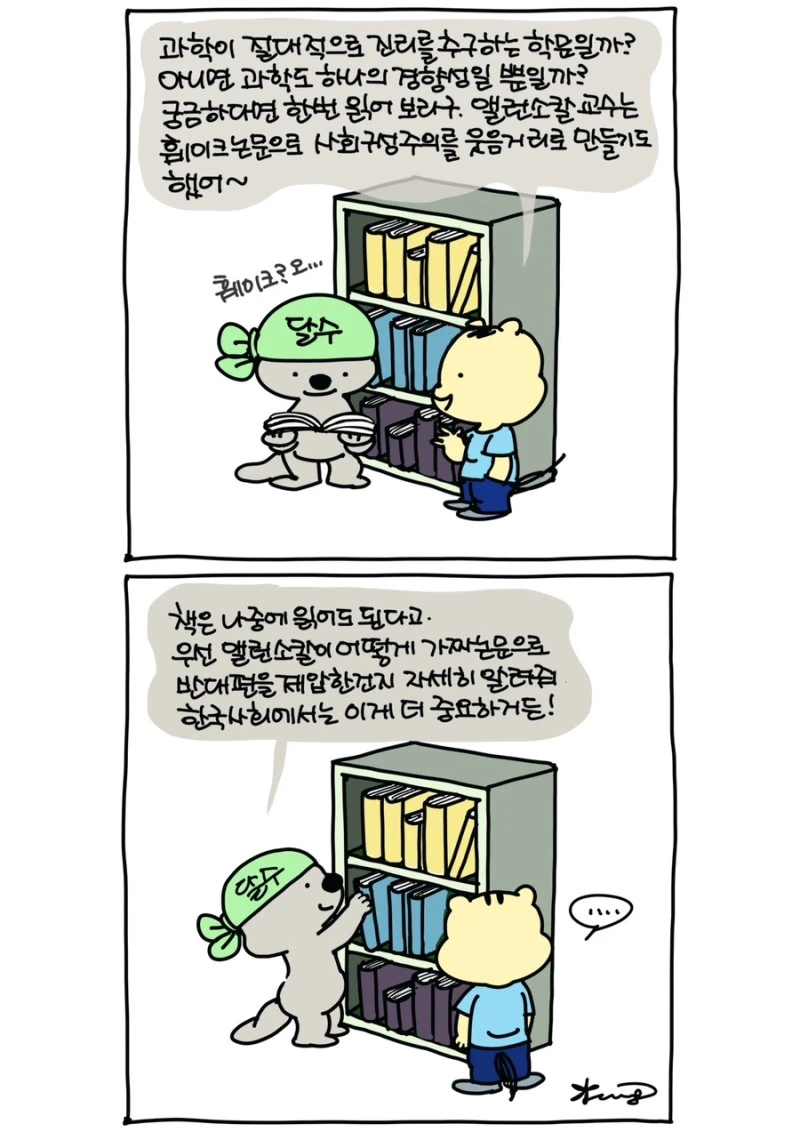 「다람이와 달수」 그립니다. 다람이는 다람쥐, 달수는 수달이고 농담속 한줄 인문학을 컨셉으로 그리는 만화 입니다.