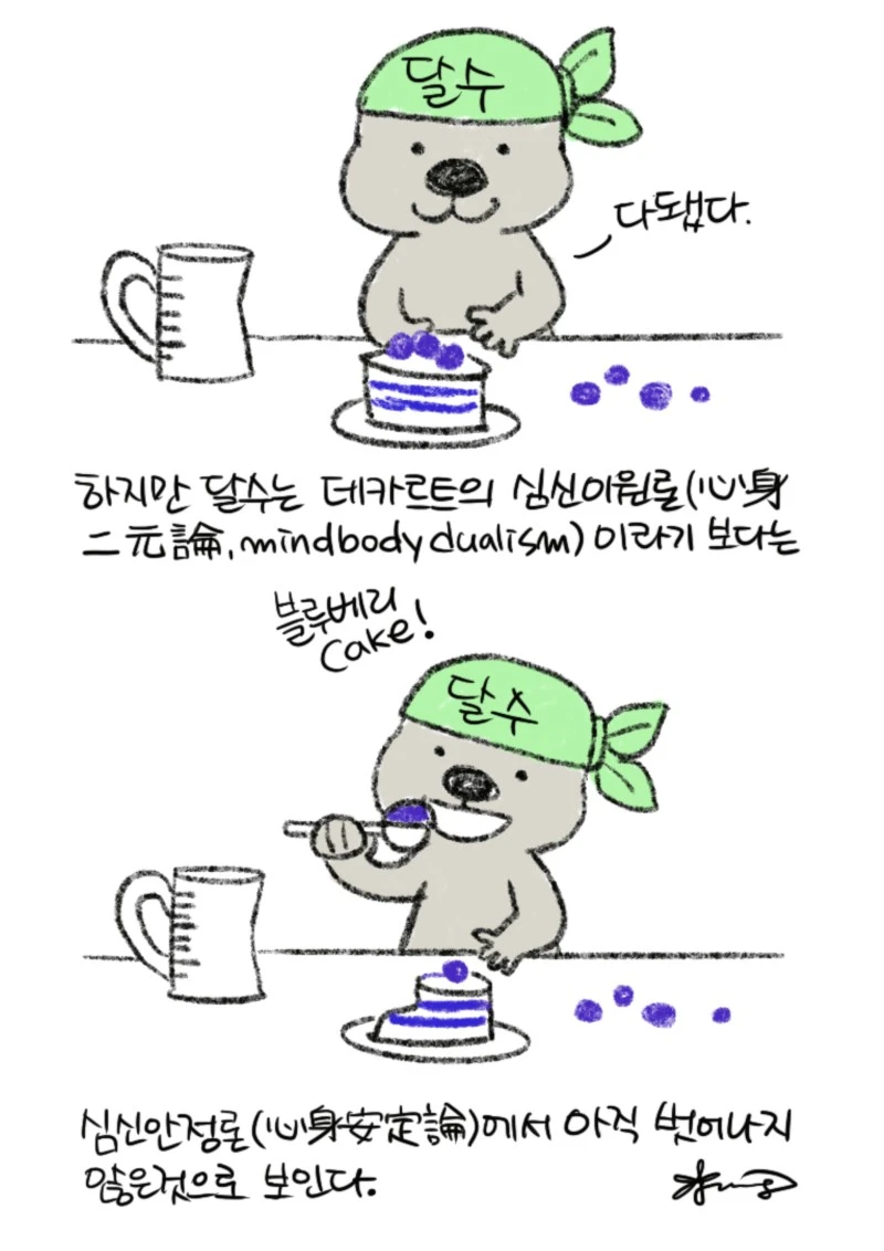 「다람이와 달수」 그립니다. 다람이는 다람쥐, 달수는 수달이고 농담속 한줄 인문학을 컨셉으로 그리는 만화 입니다.