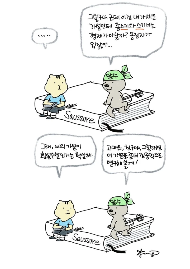 「다람이와 달수」 그립니다. 다람이는 다람쥐, 달수는 수달이고 농담속 한줄 인문학을 컨셉으로 그리는 만화 입니다.
