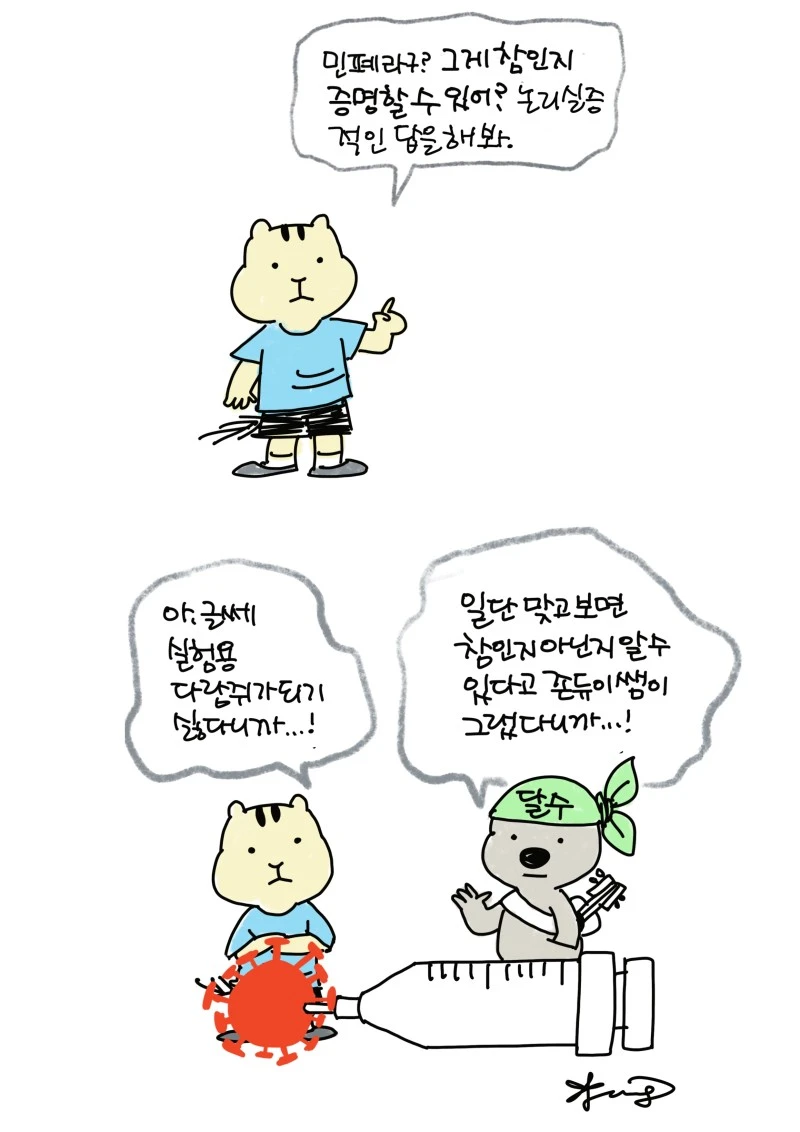 「다람이와 달수」 그립니다. 다람이는 다람쥐, 달수는 수달이고 농담속 한줄 인문학을 컨셉으로 그리는 만화 입니다.