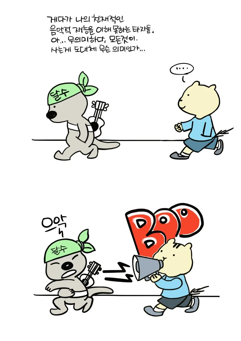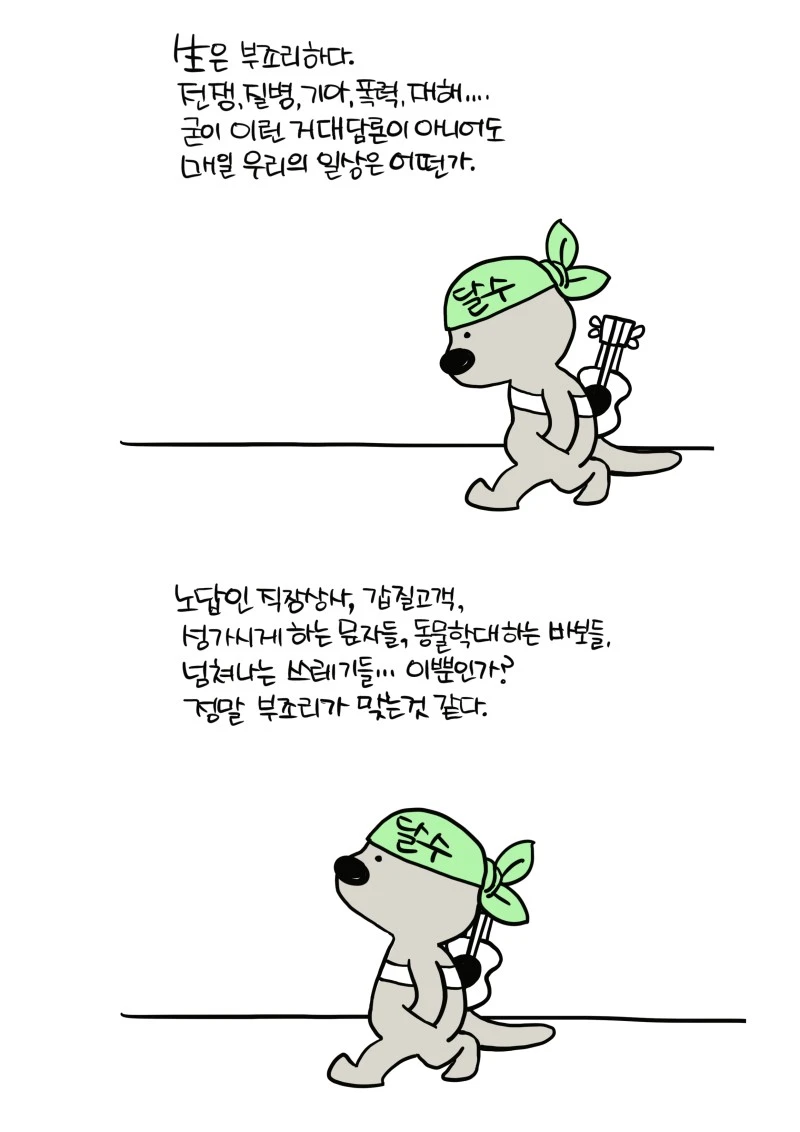 「다람이와 달수」 그립니다. 다람이는 다람쥐, 달수는 수달이고 농담속 한줄 인문학을 컨셉으로 그리는 만화 입니다.