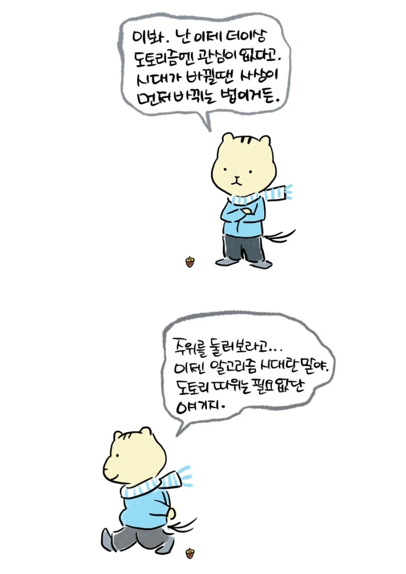 「다람이와 달수」 그립니다. 다람이는 다람쥐, 달수는 수달이고 농담속 한줄 인문학을 컨셉으로 그리는 만화 입니다.