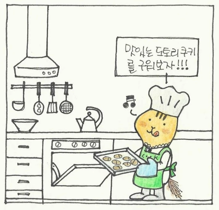 이것은 예전에 손으로 재미 삼아 그렸던 쿠키에 관련된 나의 단상인데 디지털 작업으로 옮기려고 하는 지금 시점에 보니 이 만화가 <차이와 반복>을 나타내고 있는 것이다.