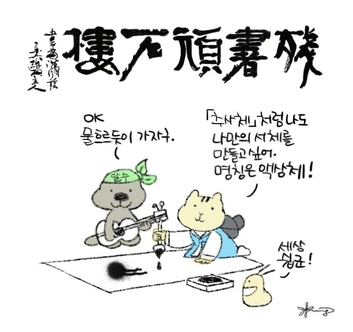 「다람이와 달수」 그립니다. 다람이는 다람쥐, 달수는 수달이고 농담속 한줄 인문학을 컨셉으로 그리는 만화 입니다.