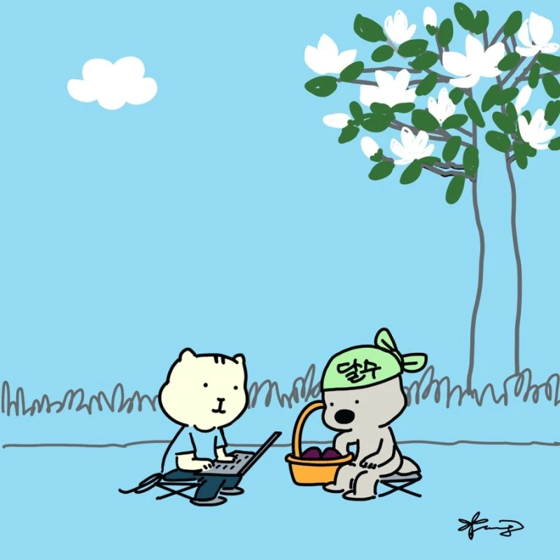 「다람이와 달수」 그립니다. 다람이는 다람쥐, 달수는 수달이고 농담속 한줄 인문학을 컨셉으로 그리는 만화 입니다.