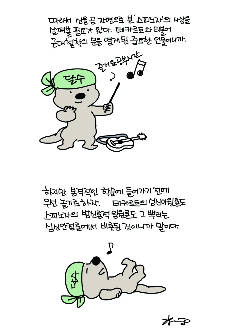 「다람이와 달수」 그립니다. 다람이는 다람쥐, 달수는 수달이고 농담속 한줄 인문학을 컨셉으로 그리는 만화 입니다.