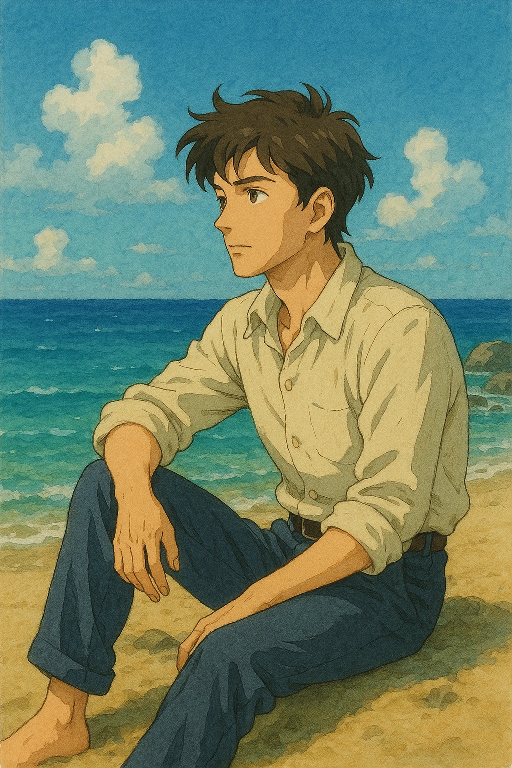 우현은 우선 짐부터 내려놓고 바닷가에 앉아 하염없이 생각에 잠긴다.