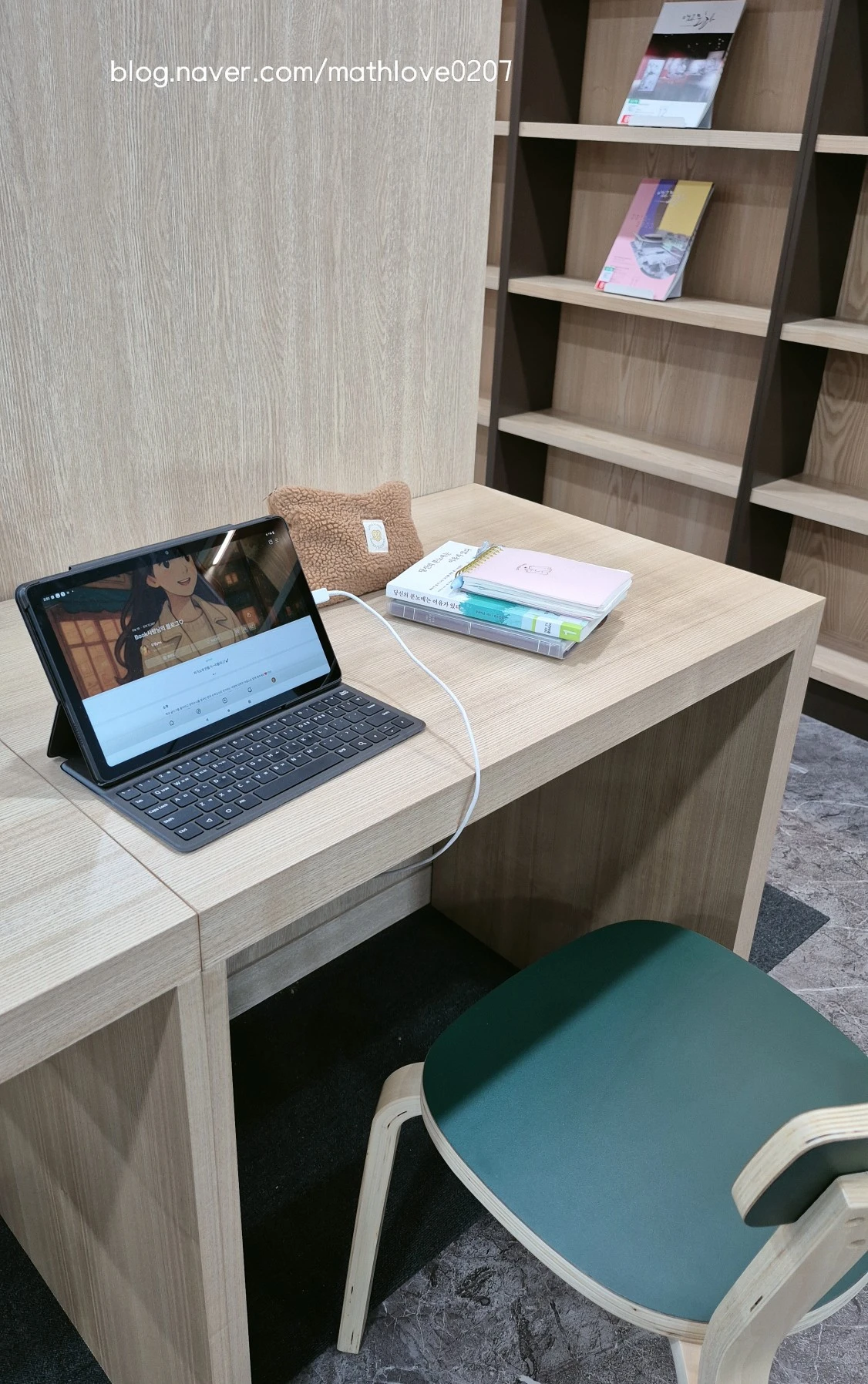 태블릿 충전이 가능한 자리를 겨우 잡았다.
