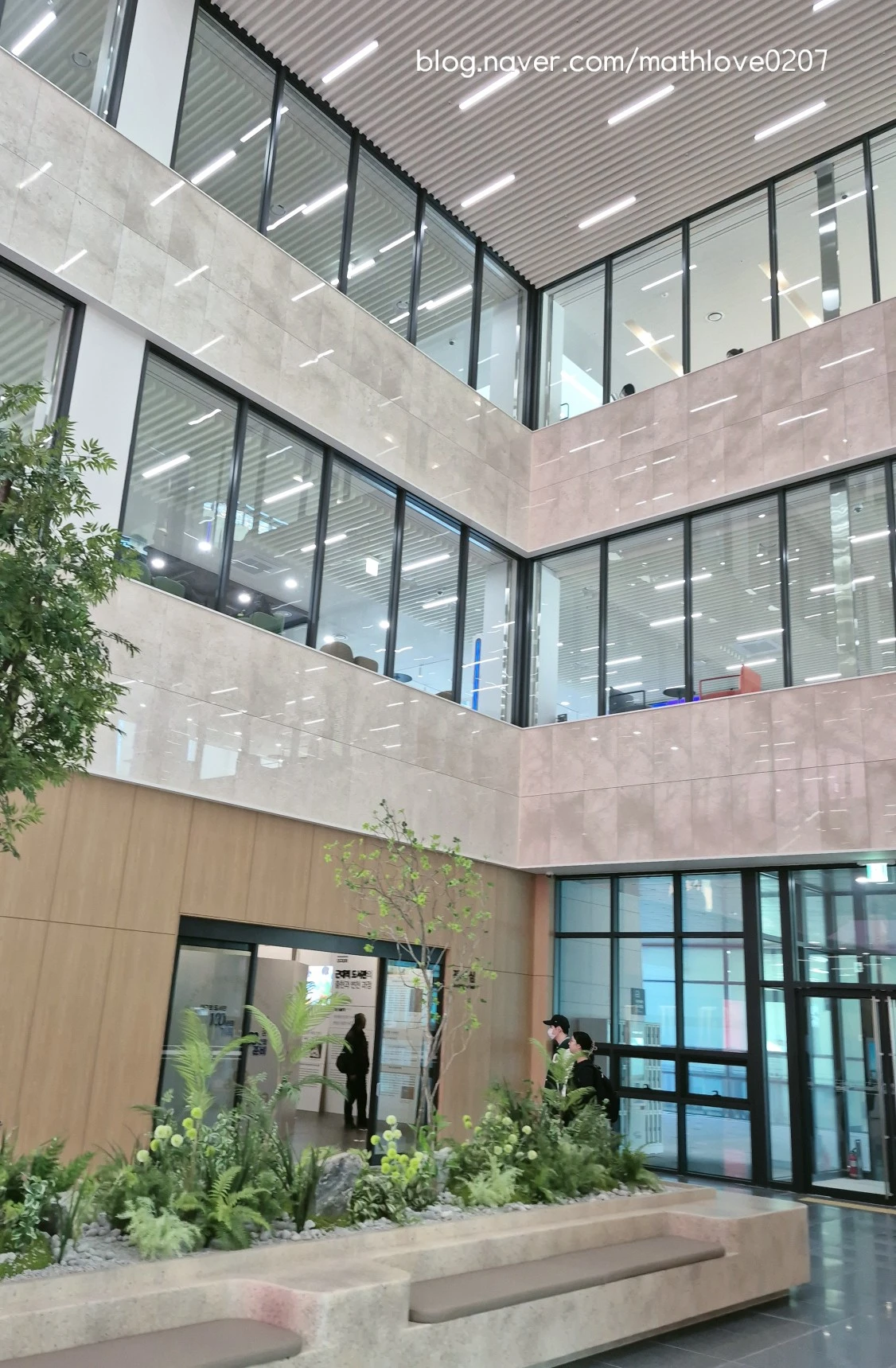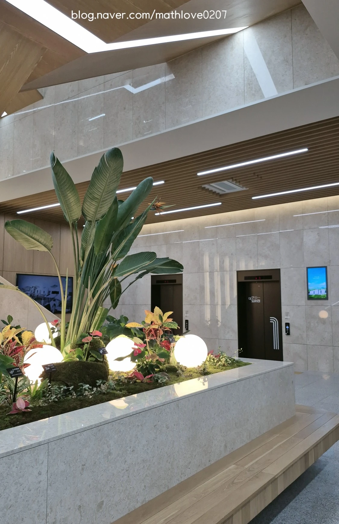 새 건물이라 반짝반짝하고, 로비의 화단과 조명도 너무 예쁘다.
