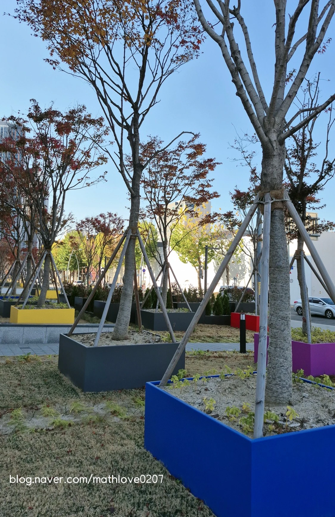 도서관 앞 정원은 알록달록 예쁜 화단들로 눈길을 끈다.
