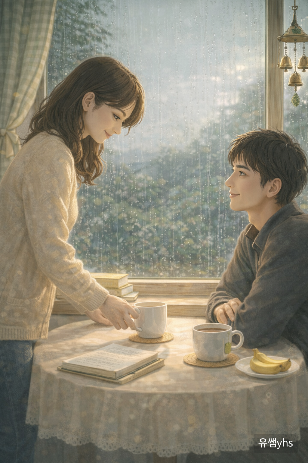 저는 이렇게 비 오는 날을 좋아하거든요.”