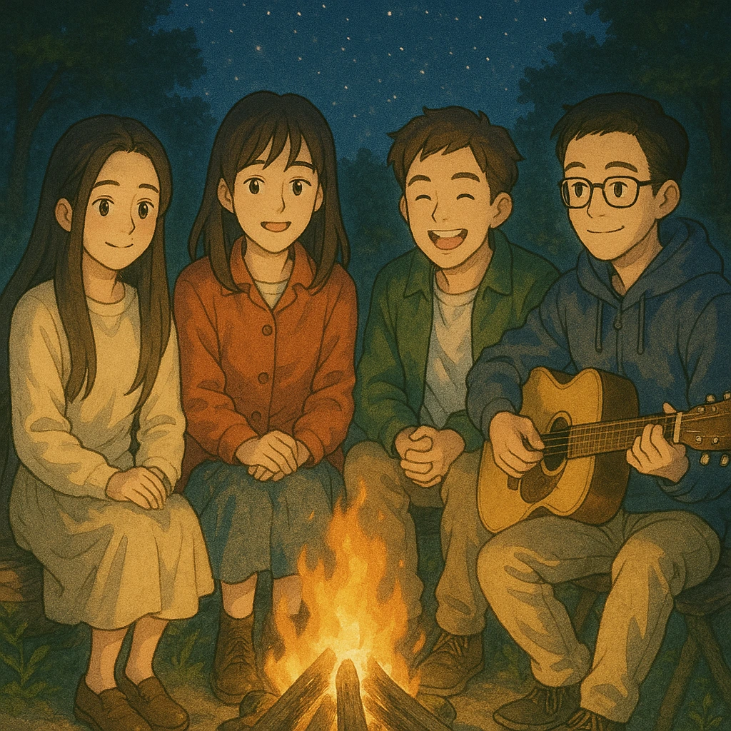 그때처럼 캠프파이어도 하고 노래도 부르고 그러면 정말 좋겠네.'
